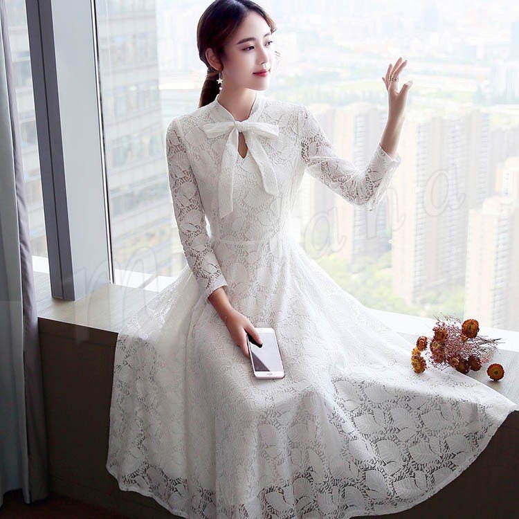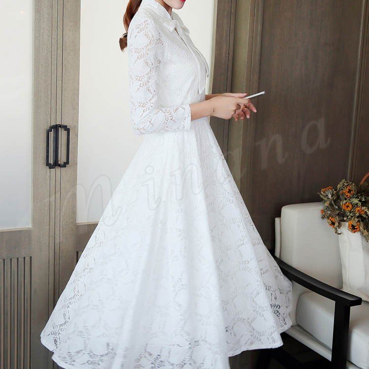 総レースワンピース 結婚式 フォーマル パーティードレス大きいサイレディース ドレス 透け感 白ワンピース 膝丈 ミモレ丈 ミディアム丈 ワン