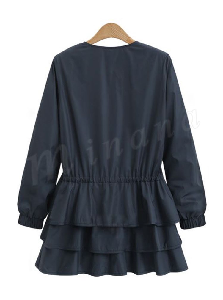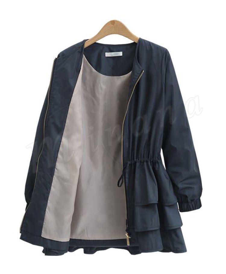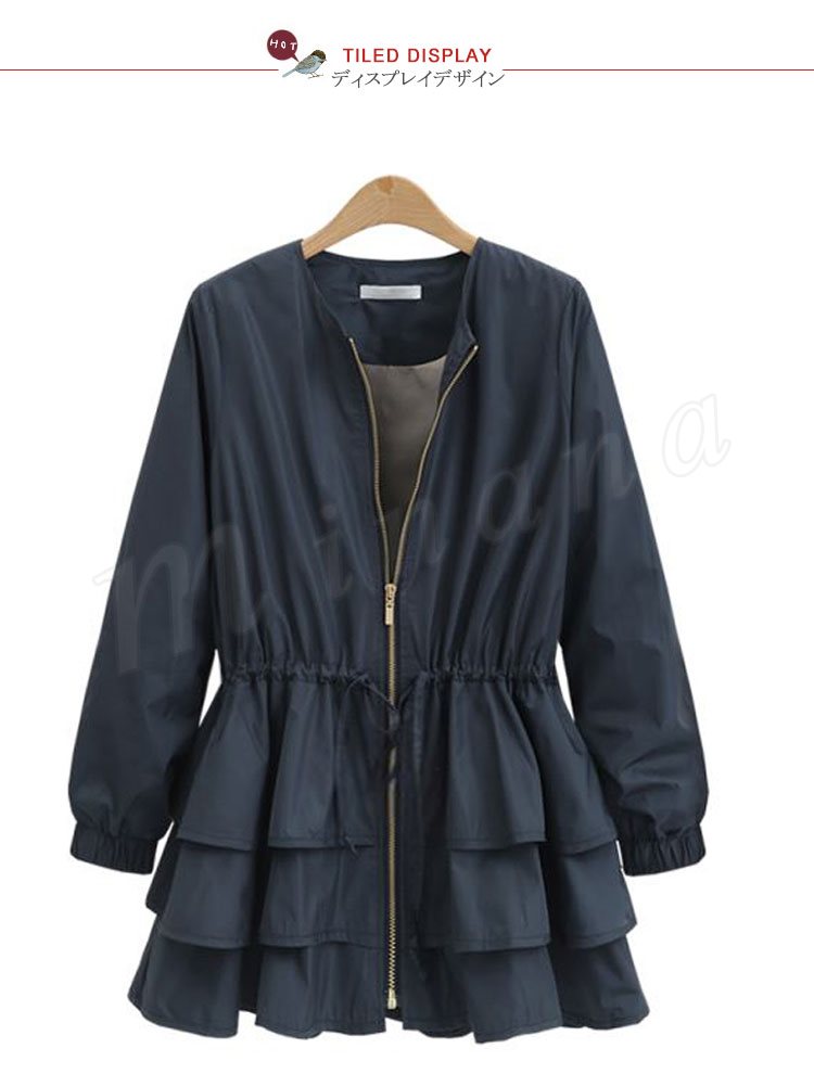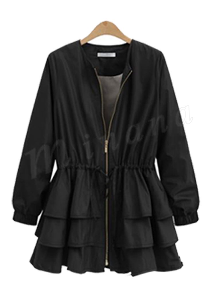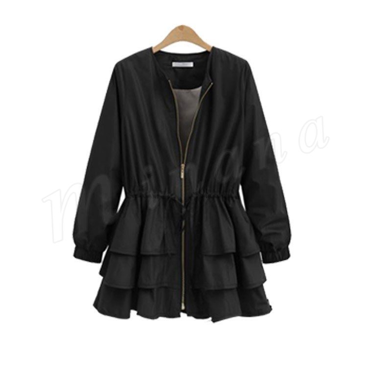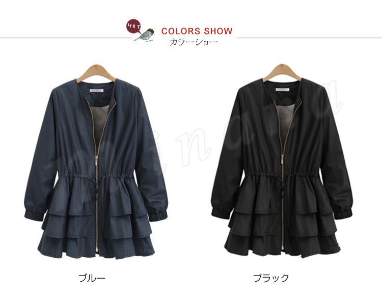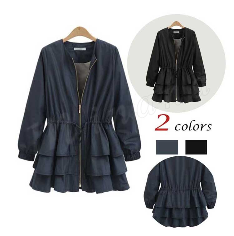ブルゾン レディース ブルゾンジャケット ジャケット アウター フリル ノーカラー おしゃれ ブラック 秋冬新作 M/L/XL/2XL/3XL