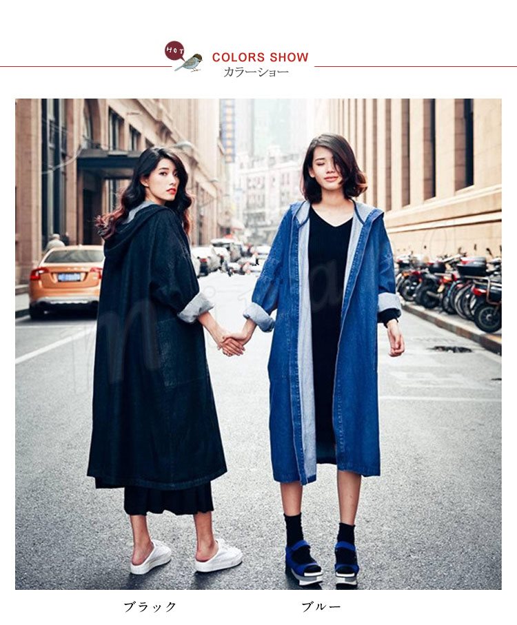 レディース アウター コート デニム 薄手 羽織 デニムチェスターコート デニムジャケット ロングコート ゆったり ボタンレス デニムコート