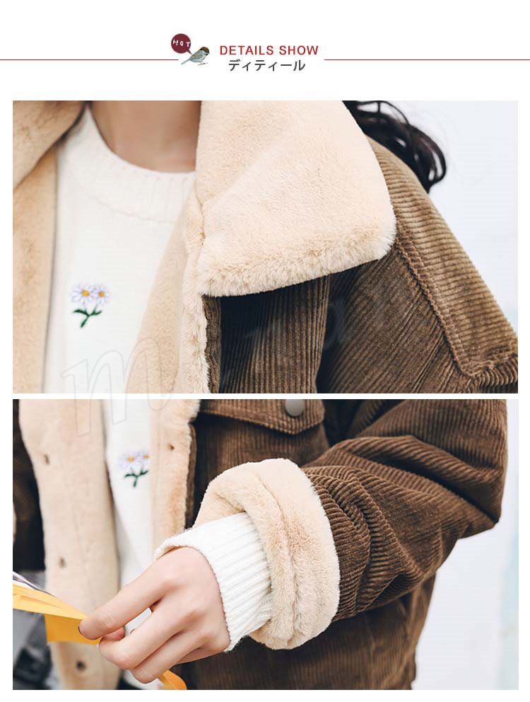 ブルゾン レディース ブルゾンジャケット コーデュロイ コールテン ファー ジャケット アウター おしゃれ 秋冬新作 S/M/L/XL