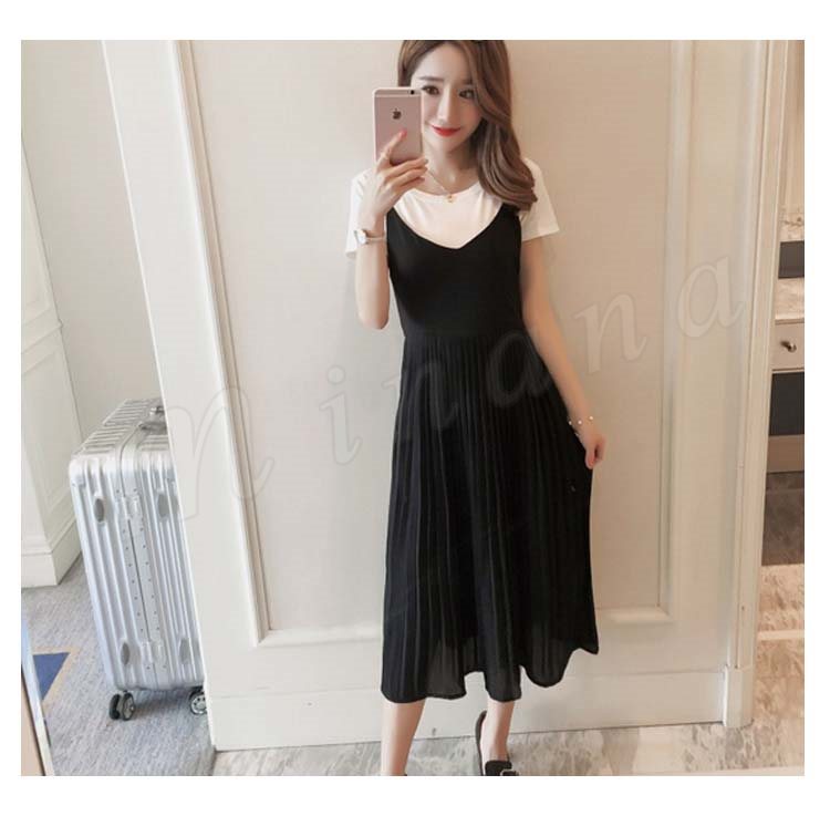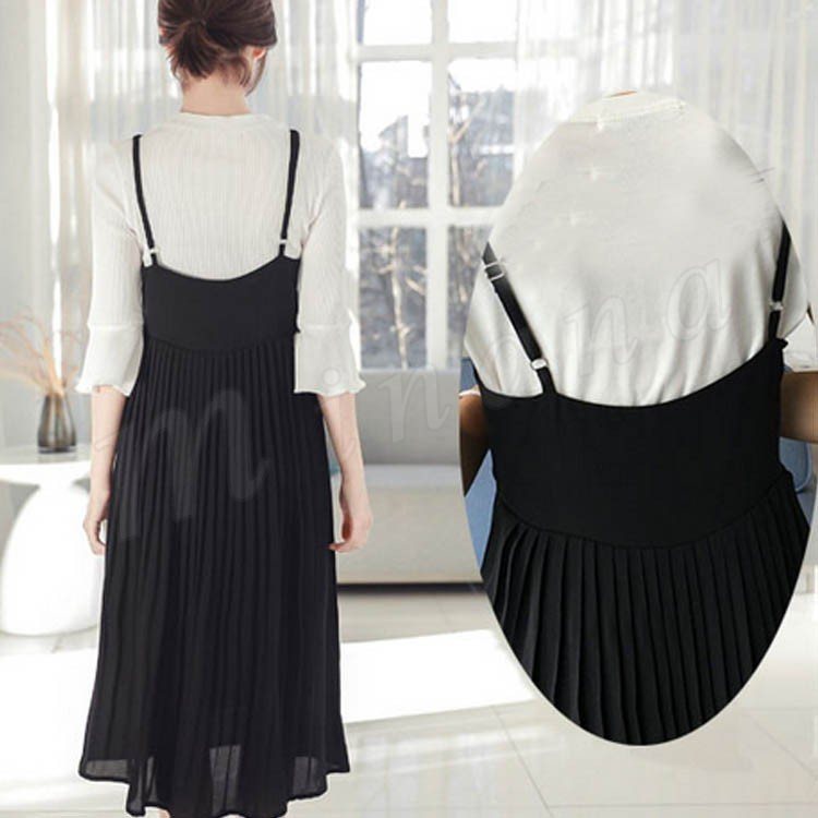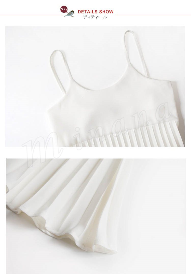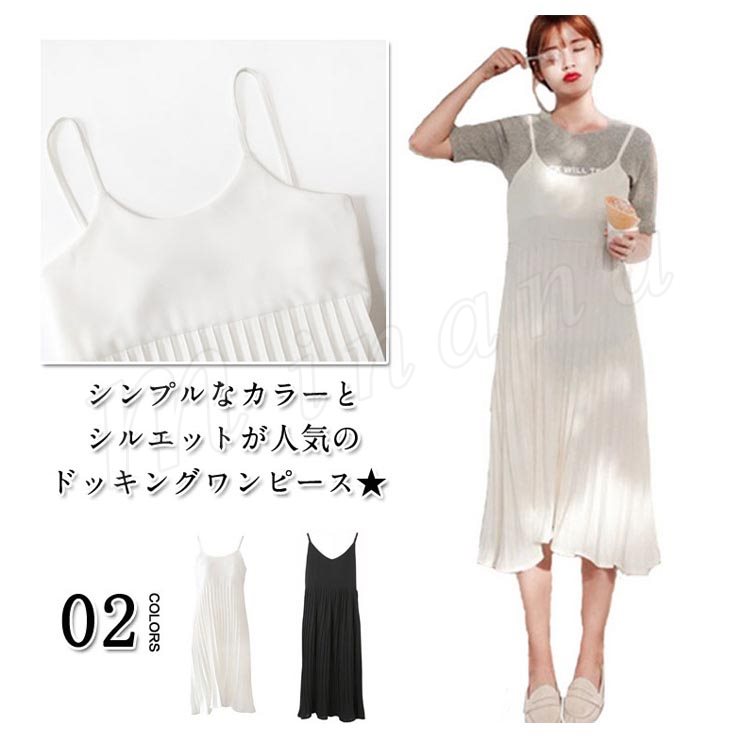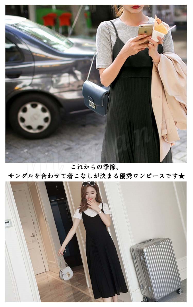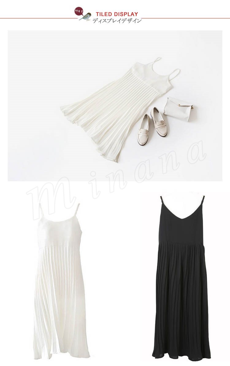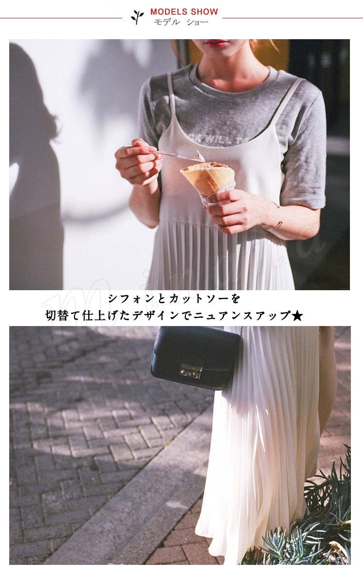 キャミソールワンピース夏ワンピースノースリーブ切り替えワンピースシフォンプリーツマキシ丈無地2017新作シフォンワンピース