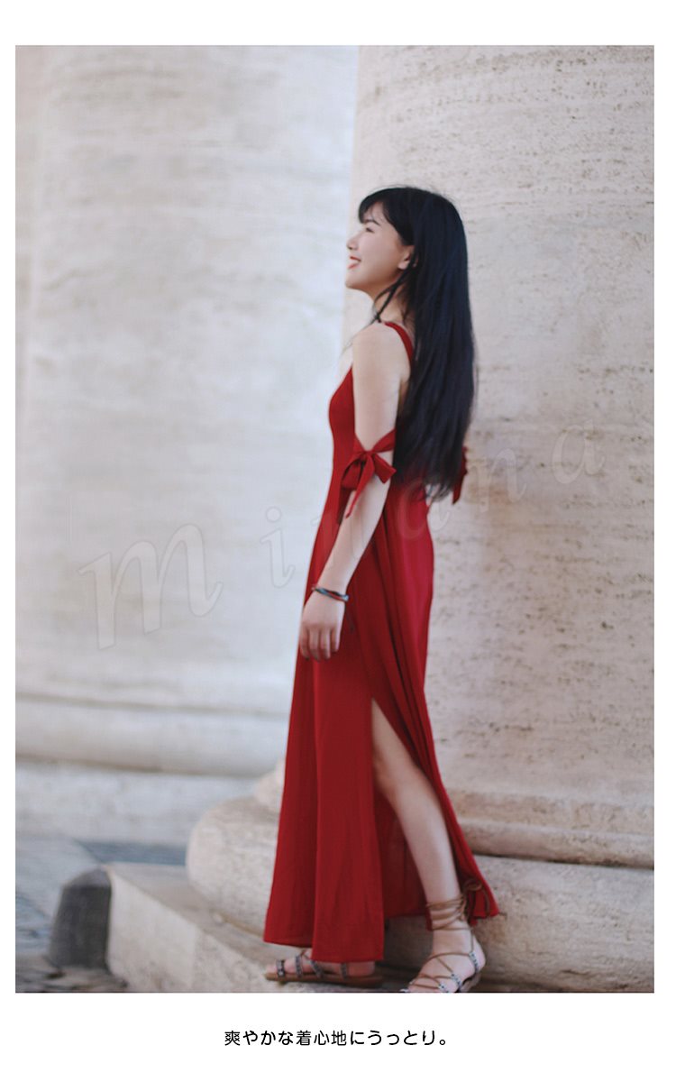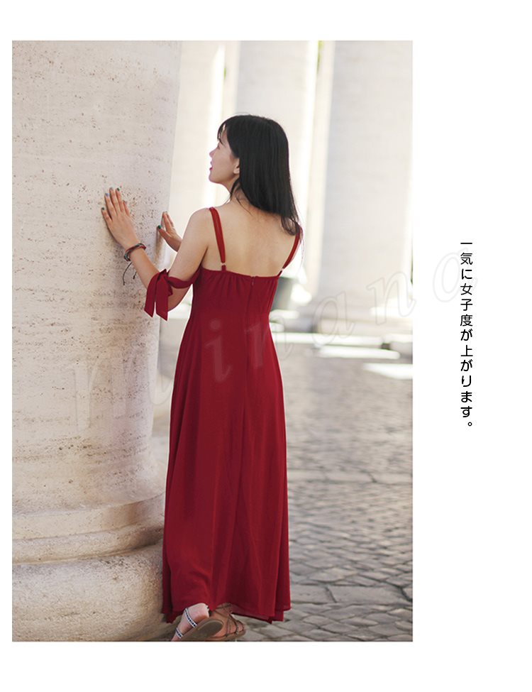 キャミワンピース2wayスリットワンピースレディースロングチュニックノースリーブマキシ丈キレイめシフォン夏新作ワンピース