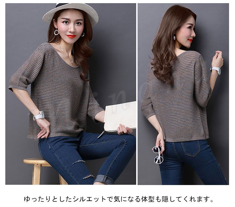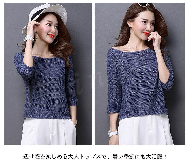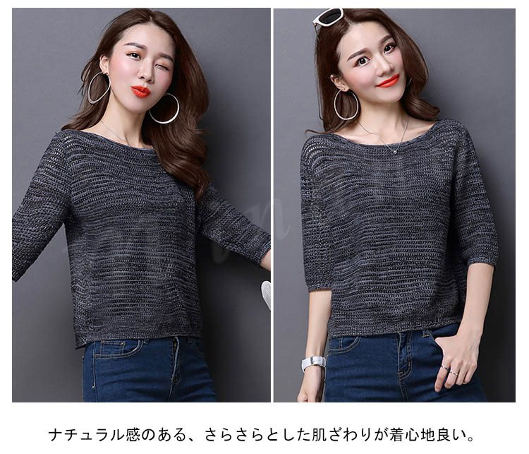 カットソー七分袖セーター無地無地レディースドルマン袖ゆったりキレイめトップス薄てニットセーターオフショルダー