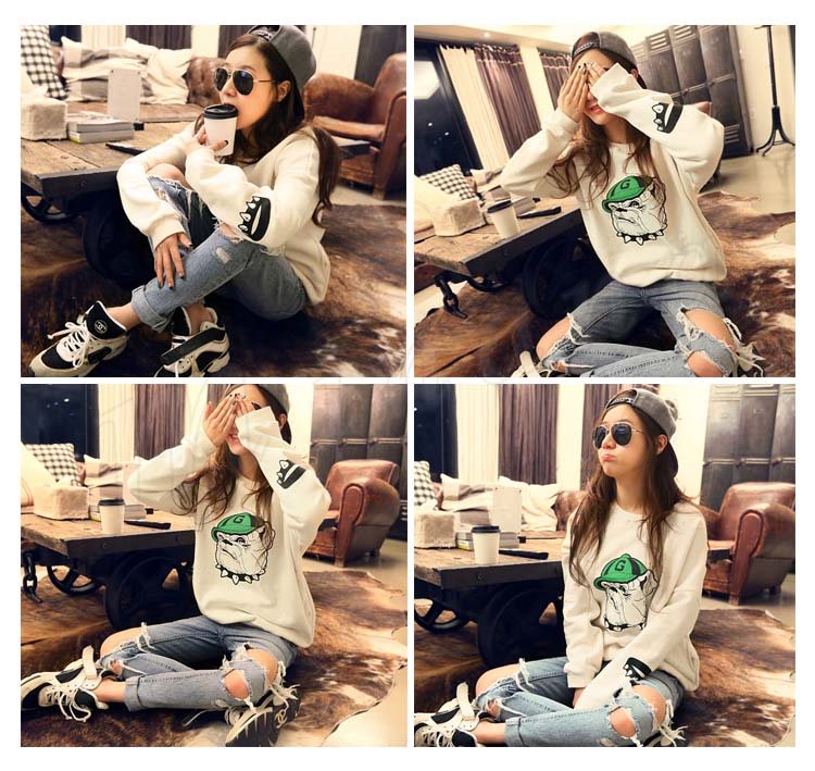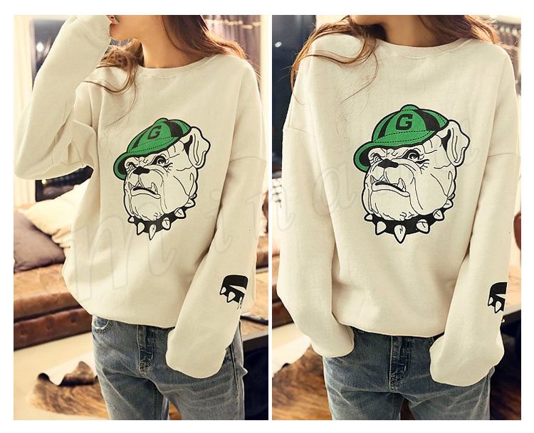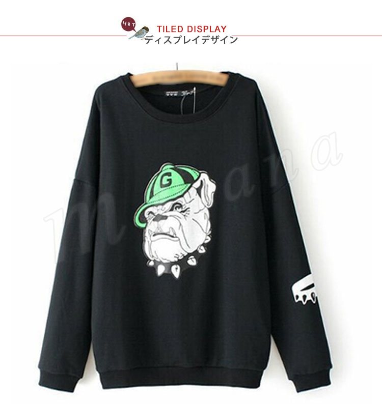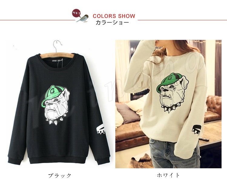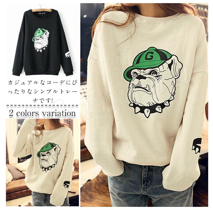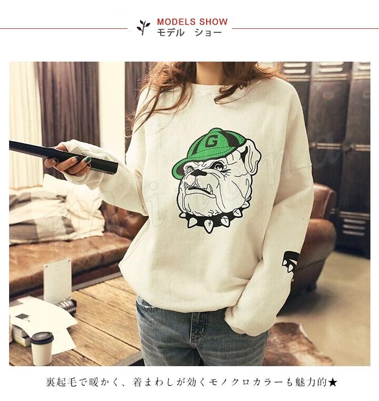 ラフ&カジュアルデザイン★裏起毛 あったかトレーナ プルオーバー ブルドッグ 腕プリント入り ポケット付き (全2色)