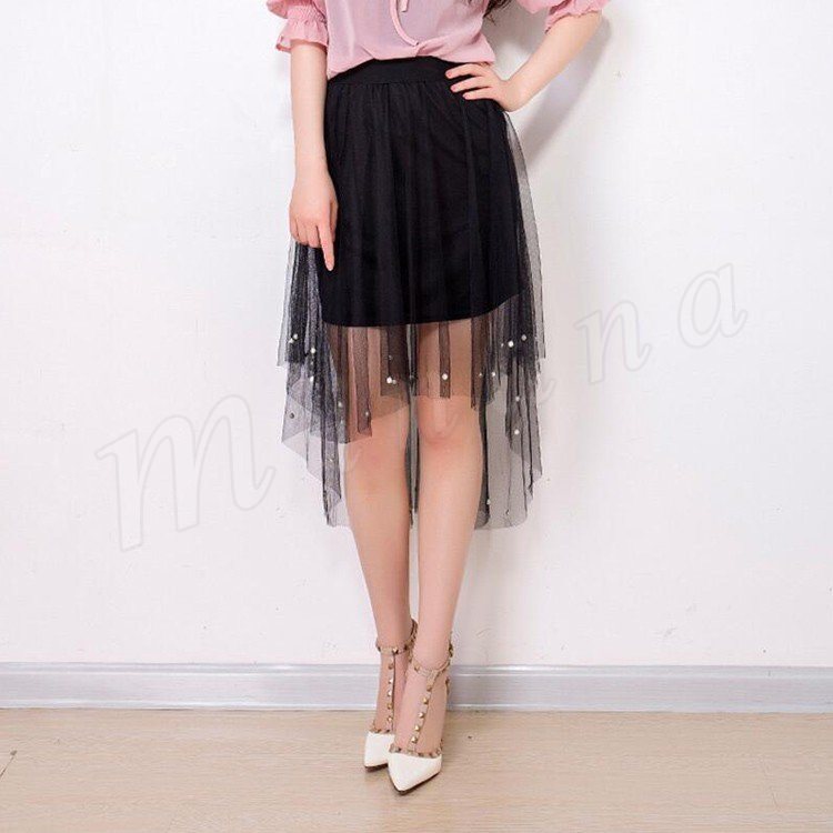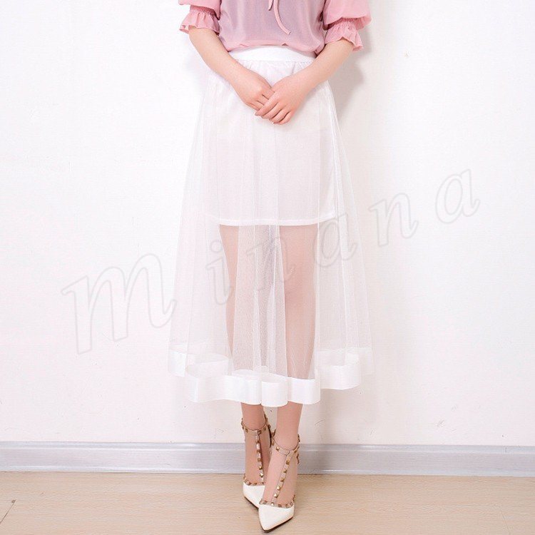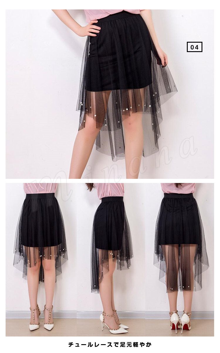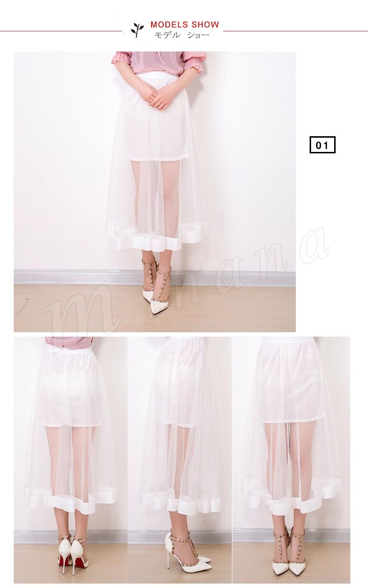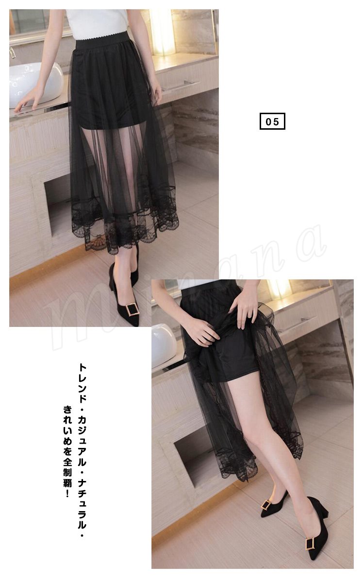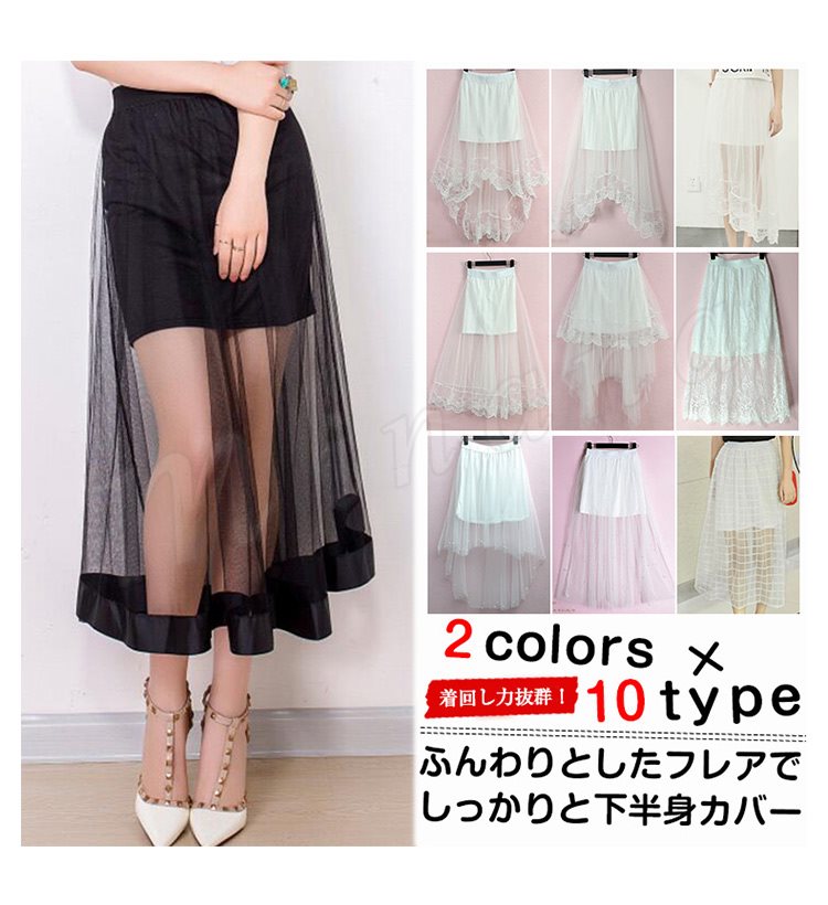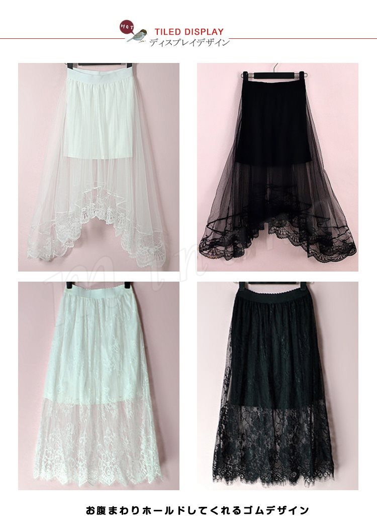 レディース スカート■新色追加!! 膝下丈・ロング丈から選べる!! 裏地付き ウエストゴム チュールレーススカート フレア/大人可愛い マキ