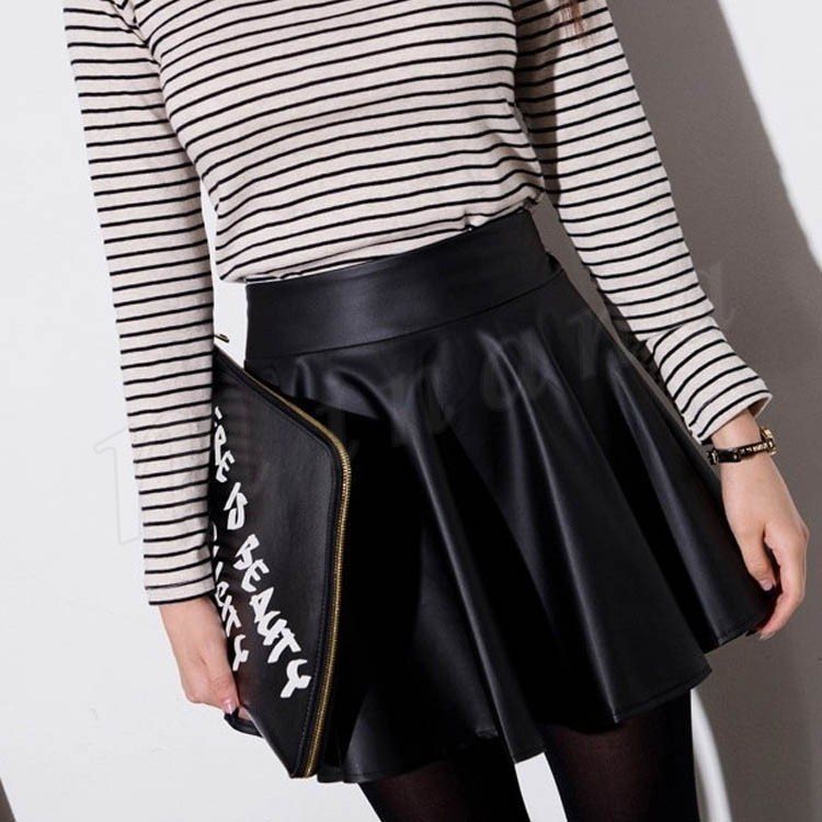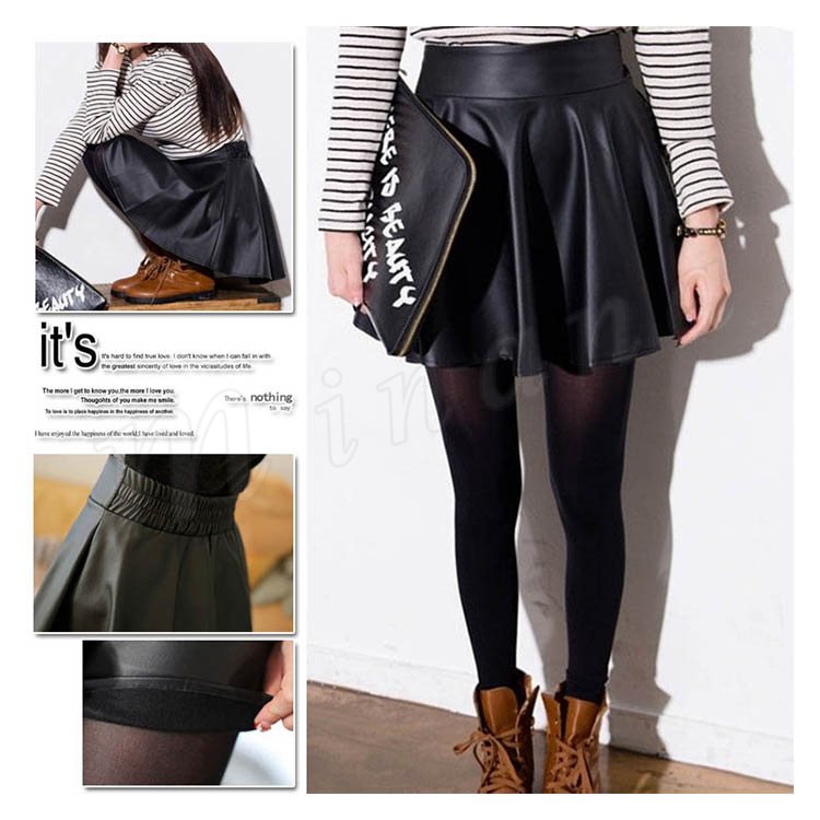 2017 スカート レディース プリーツスカート レザースカート ミニ丈 Aライン 無地 新作
