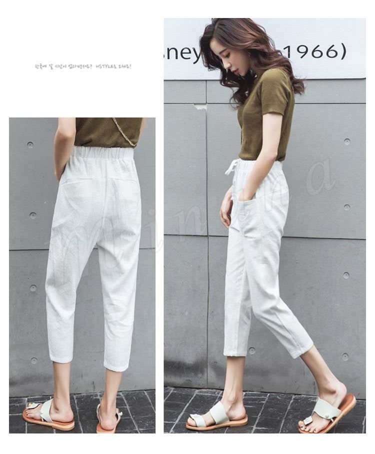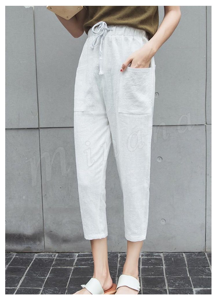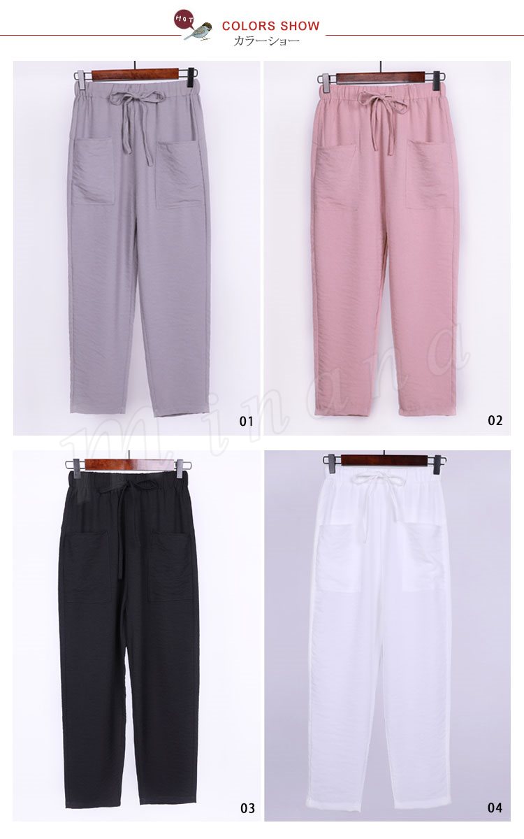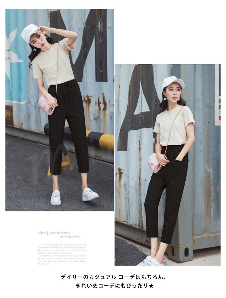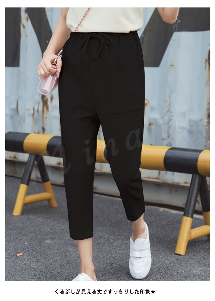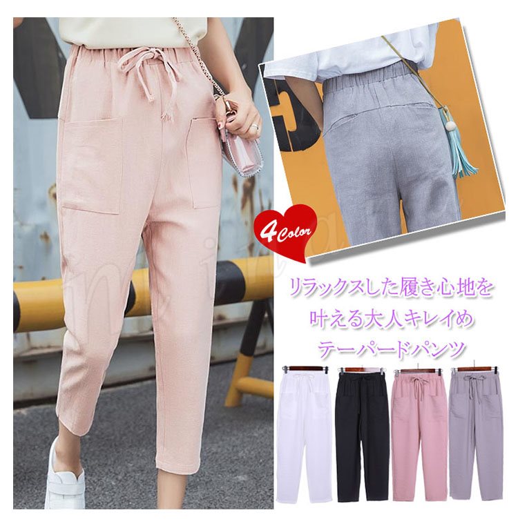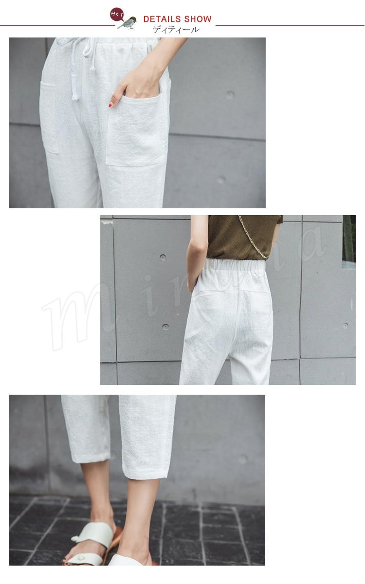 七分丈パンツテーパードパンツ綿麻パンツレディースカジュアルパンツ九分丈パンツボトムスゆるパンツウェストゴムポケット付き