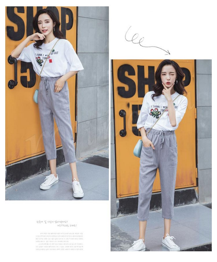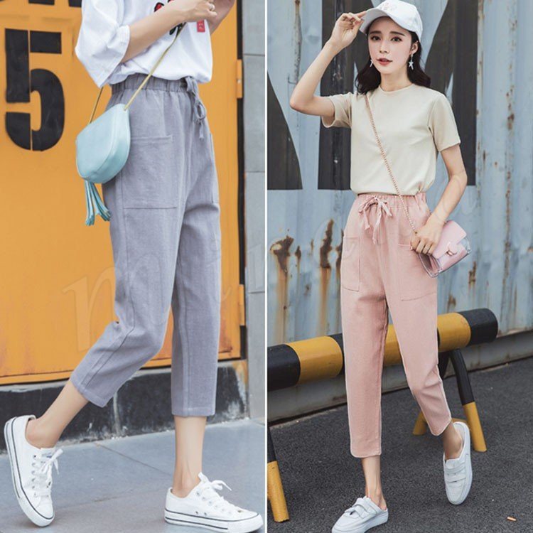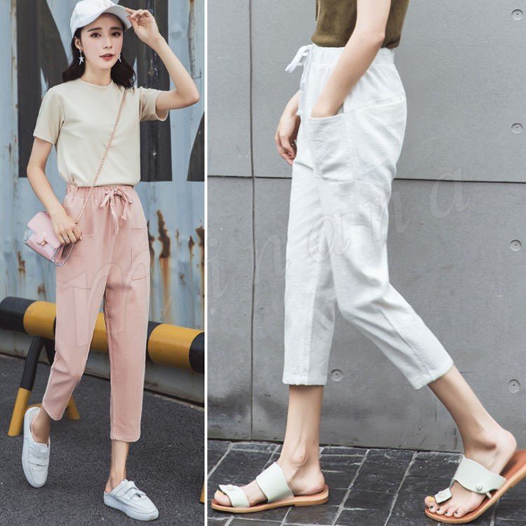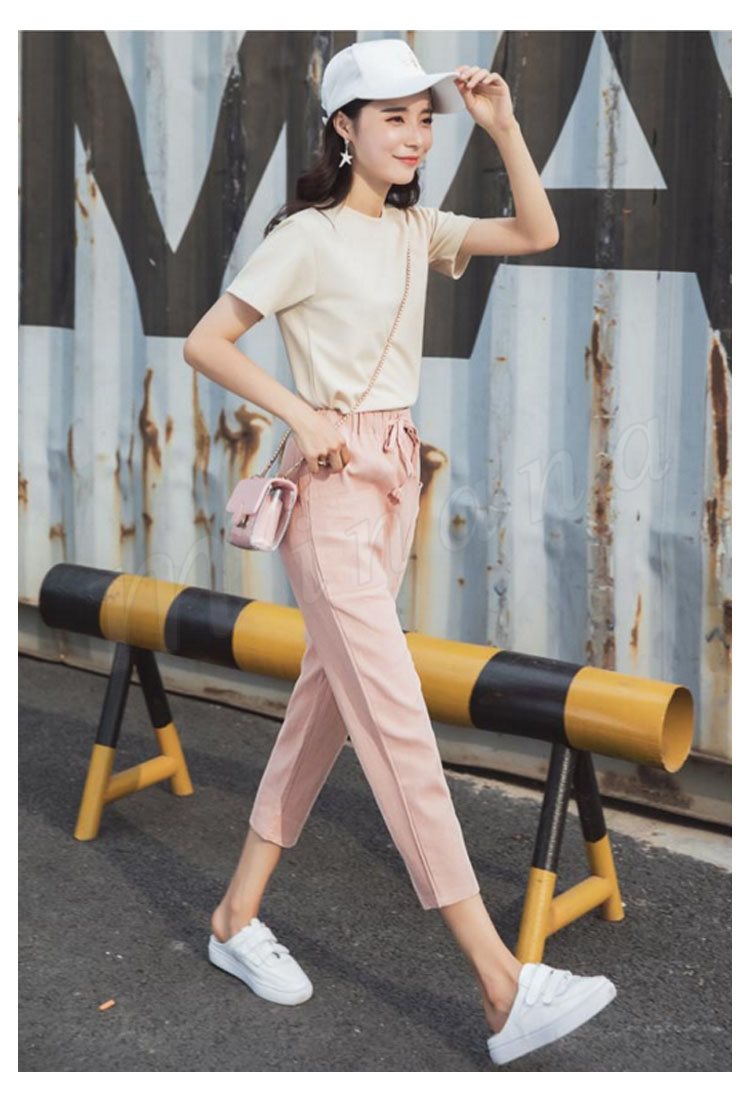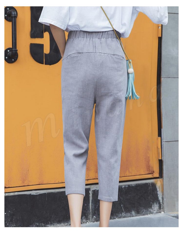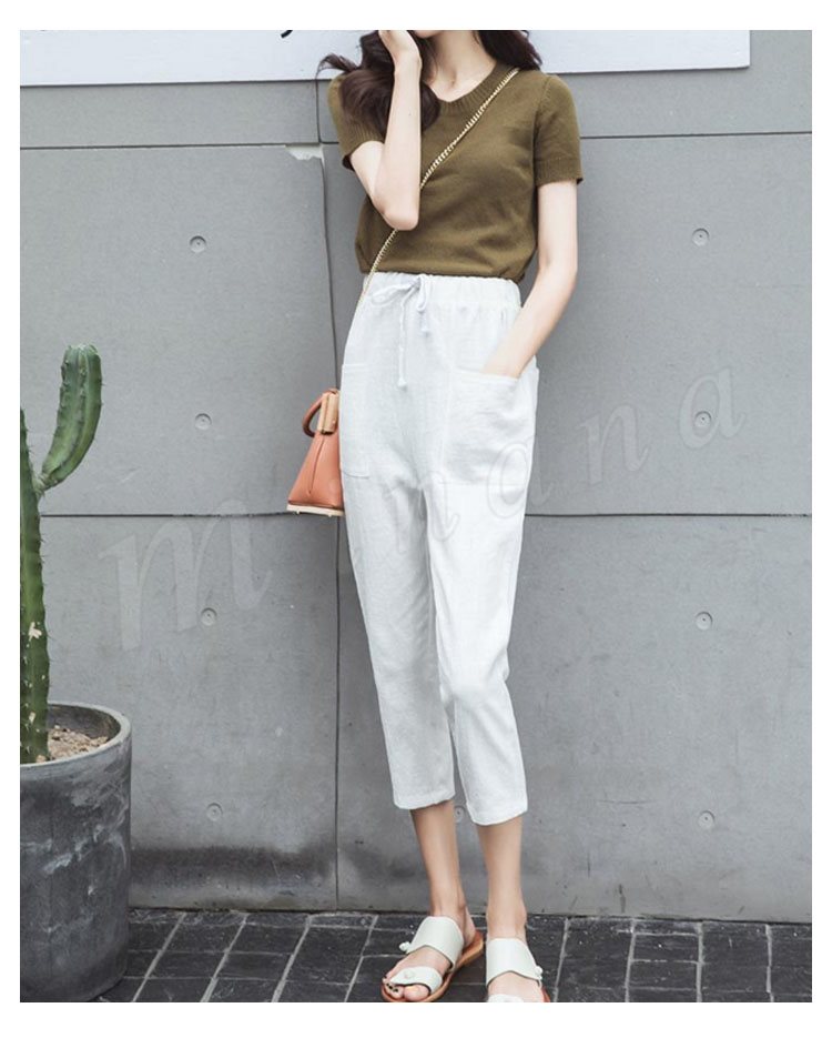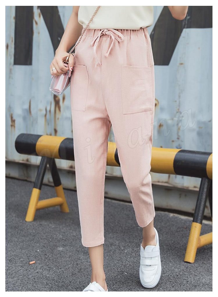 七分丈パンツテーパードパンツ綿麻パンツレディースカジュアルパンツ九分丈パンツボトムスゆるパンツウェストゴムポケット付き