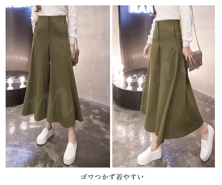 レディースズボンパンツワイドパンツフレアパンツガウチョパンツ9分丈パンツボトムススカーチョハイウェストカジュアルパンツハイウェスト