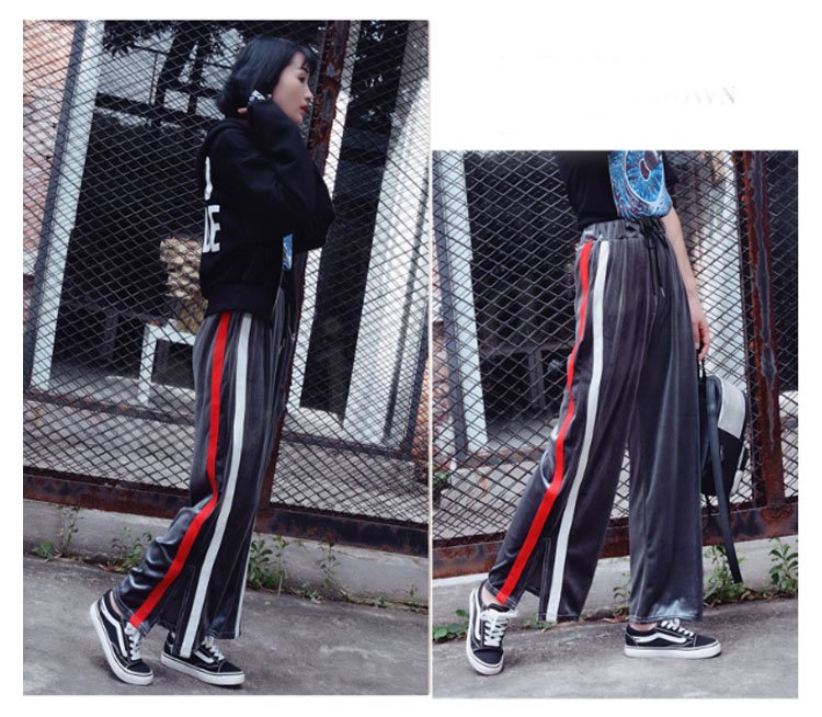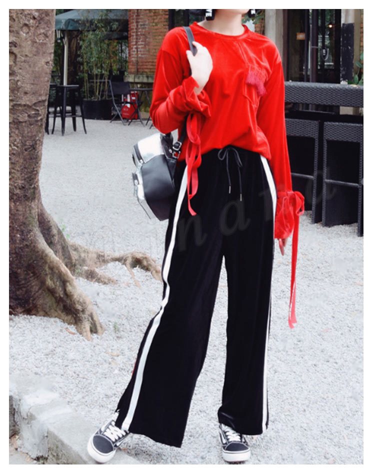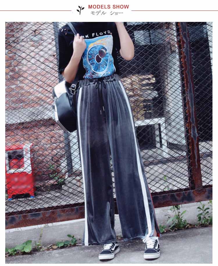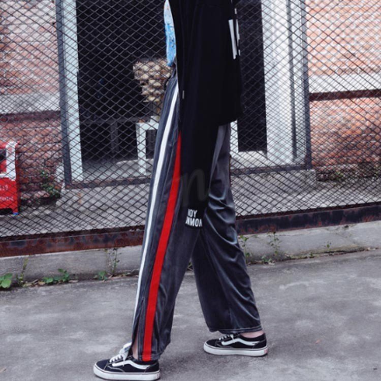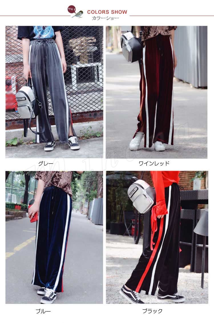 カラーのラインが可愛い楽ちんワイドパンツ♪ ワイドパンツ レディース 楽ちん ボトムス ライン ジャージ おしゃれ 可愛い ブラック 新作 M