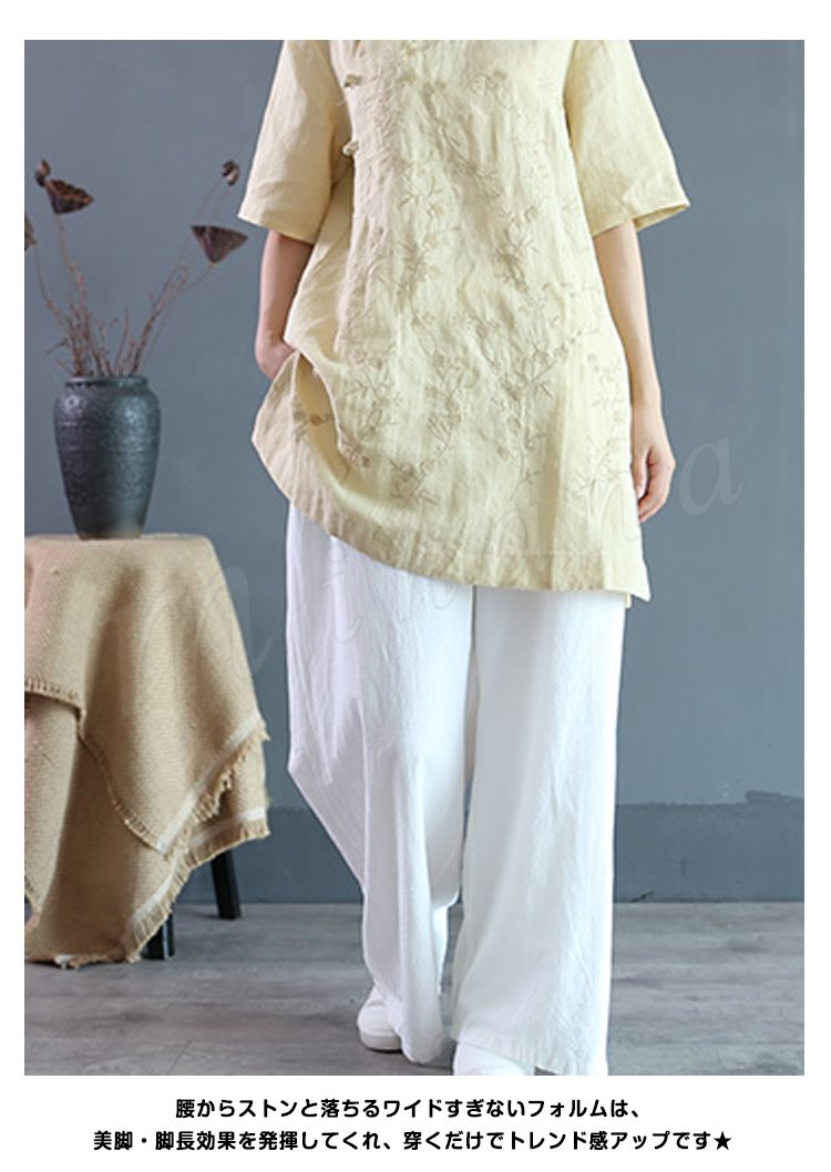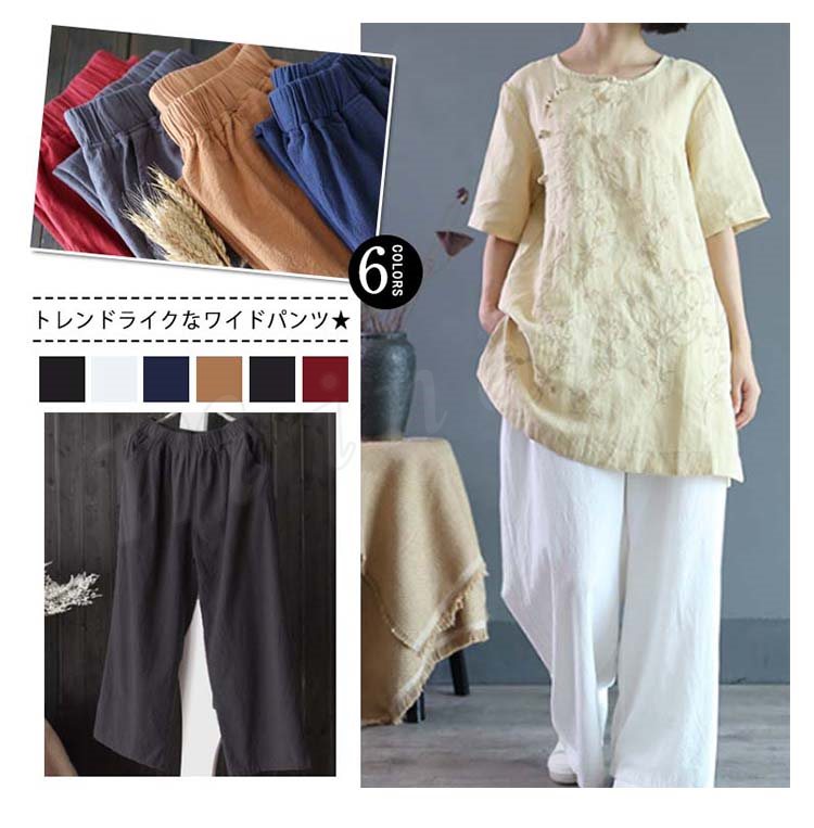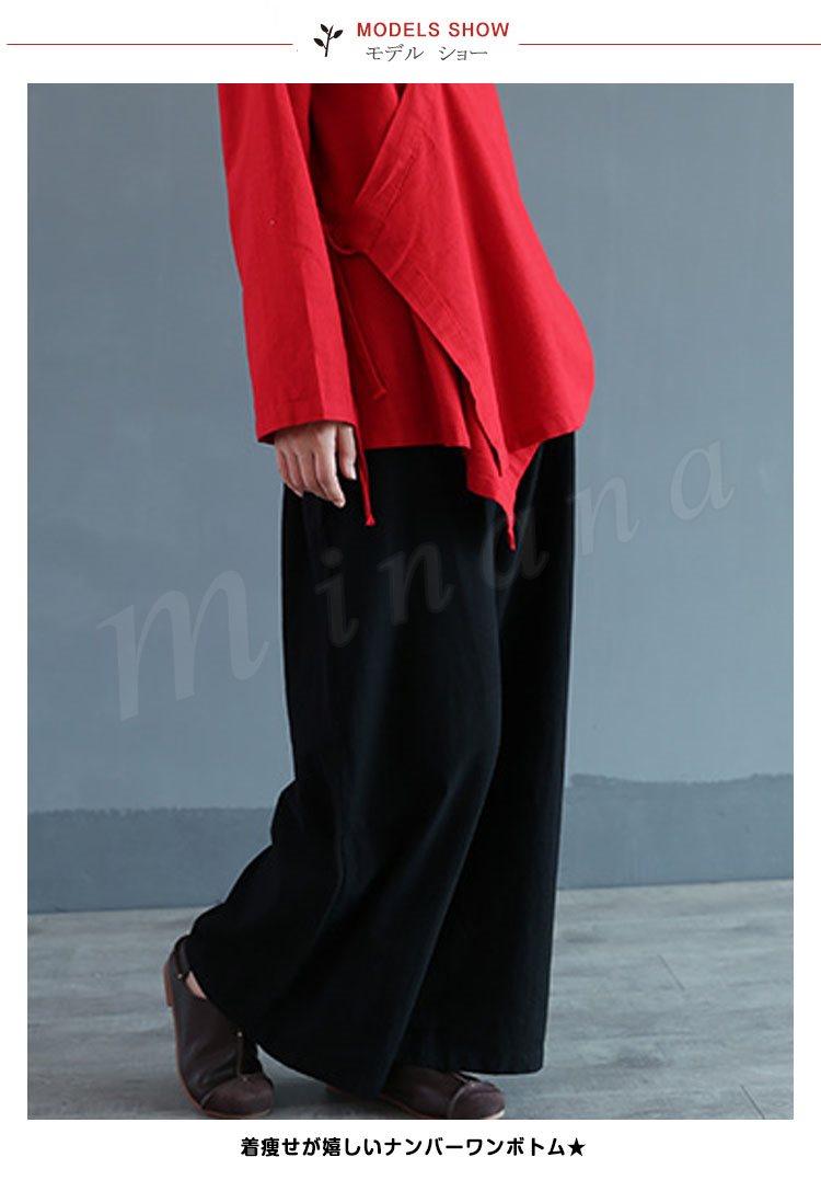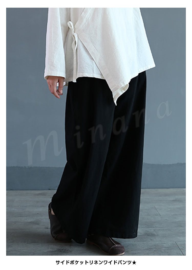 ガウチョパンツワイドパンツレディースリネンパンツリネンきれいめロング丈スカンツリラックス快適綿麻通気美脚着痩せ2017新作