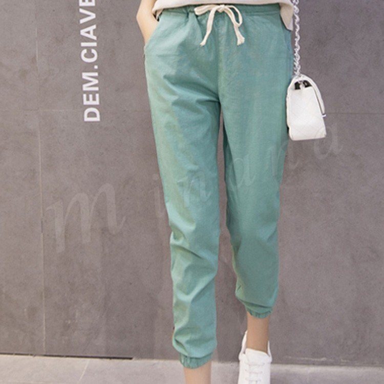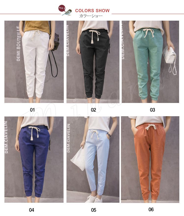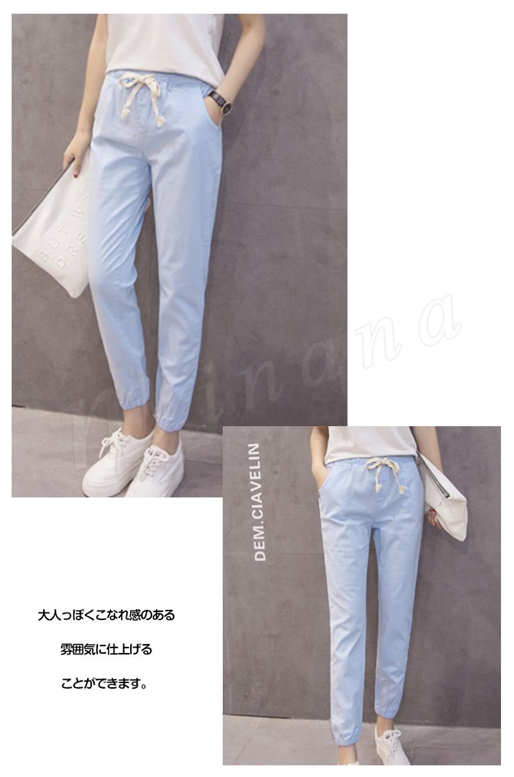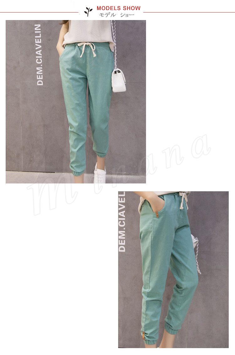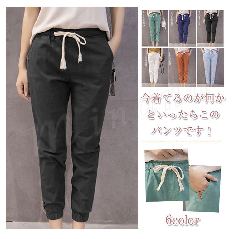 テーパードパンツレディースサルエルパンツボトムス無地リネンロングパンツリボン9分丈ゆったりパンツテーパードパンツカジュアル