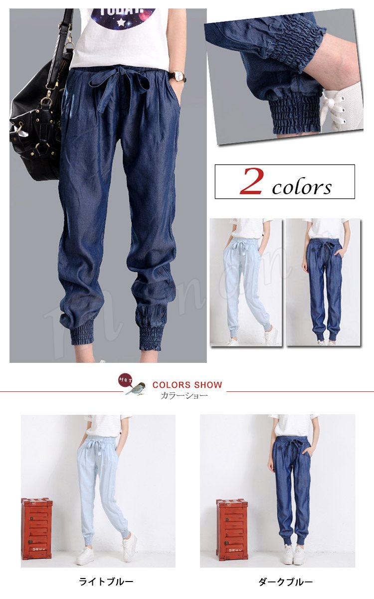 パンツ ジョガーパンツ レディース 極上の履き心地 リボン サラてろ ボトムス ズボン 裾絞り ボムウエスト ウエストゴム 大きいサイズ対応
