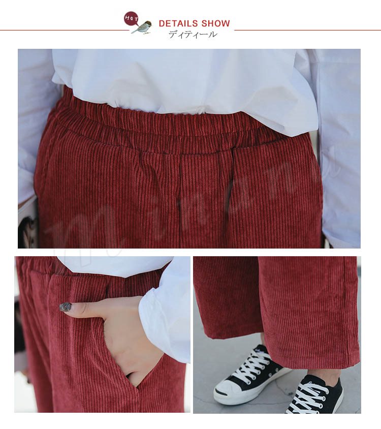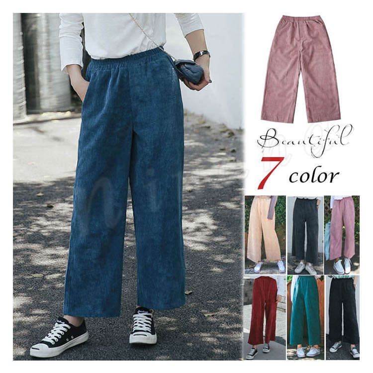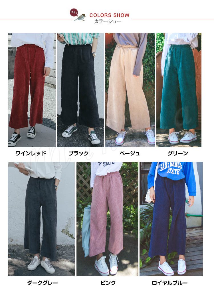 ワイドパンツ レディース 楽ちん ボトムス ウエストゴム ガウチョ ガウチョパンツ コーデュロ おしゃれ 可愛い ブラック カラバリ豊富 秋冬