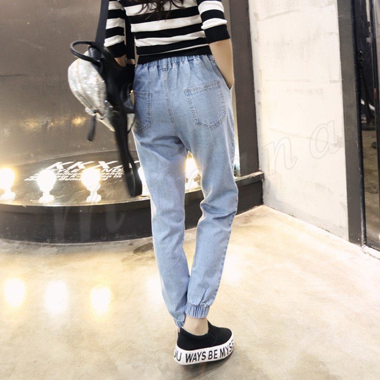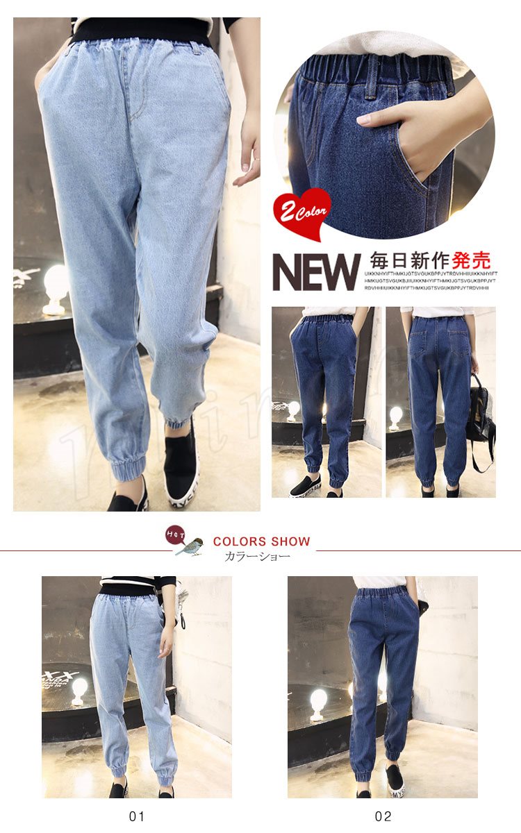 2017 ボーイフレンドデニム デニムパンツ テーパードパンツ ウエストゴム 裾ゴム サルエル ゆったり シンプル 改良版 新作