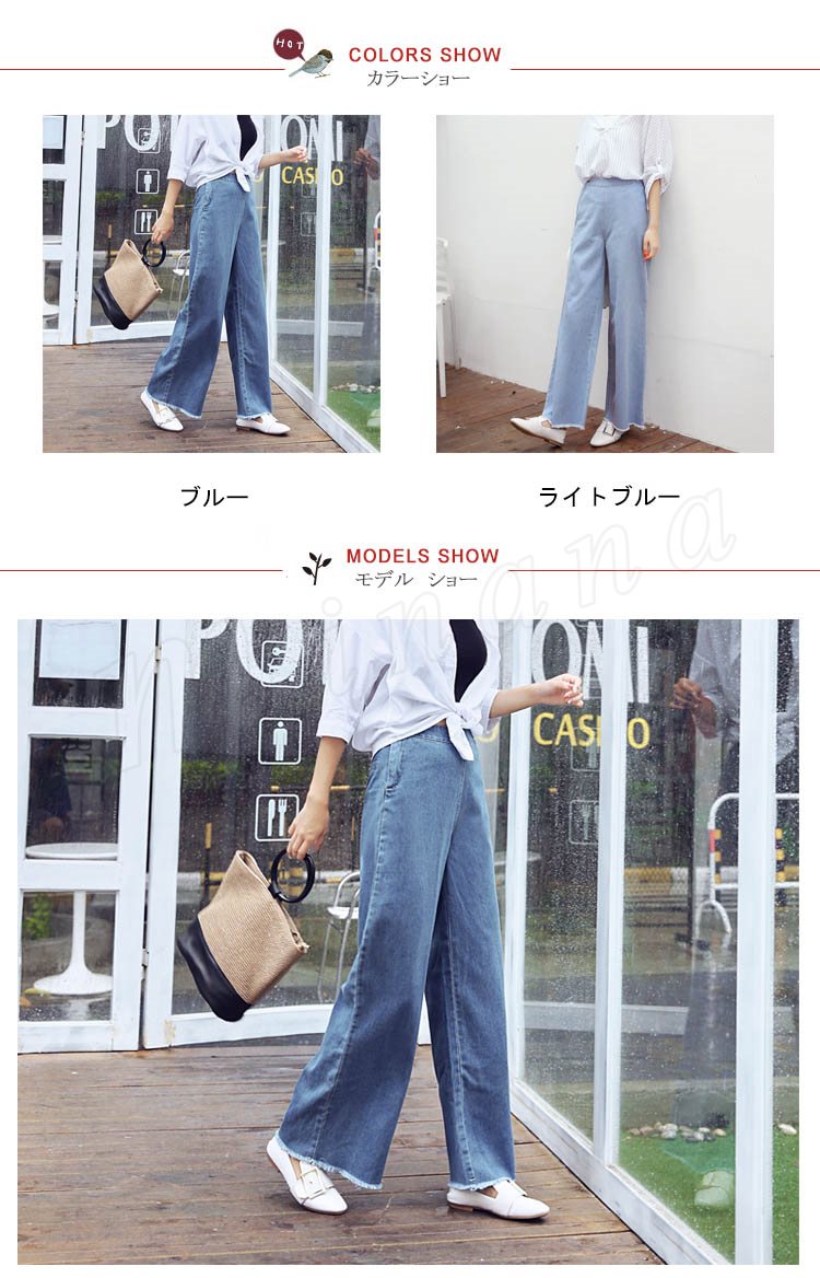 2017秋の新作 デニムパンツ レディース デニム ロングパンツ ボトムス カットオフ ワイドパンツ フレア パンツ おしゃれ 可愛い?
