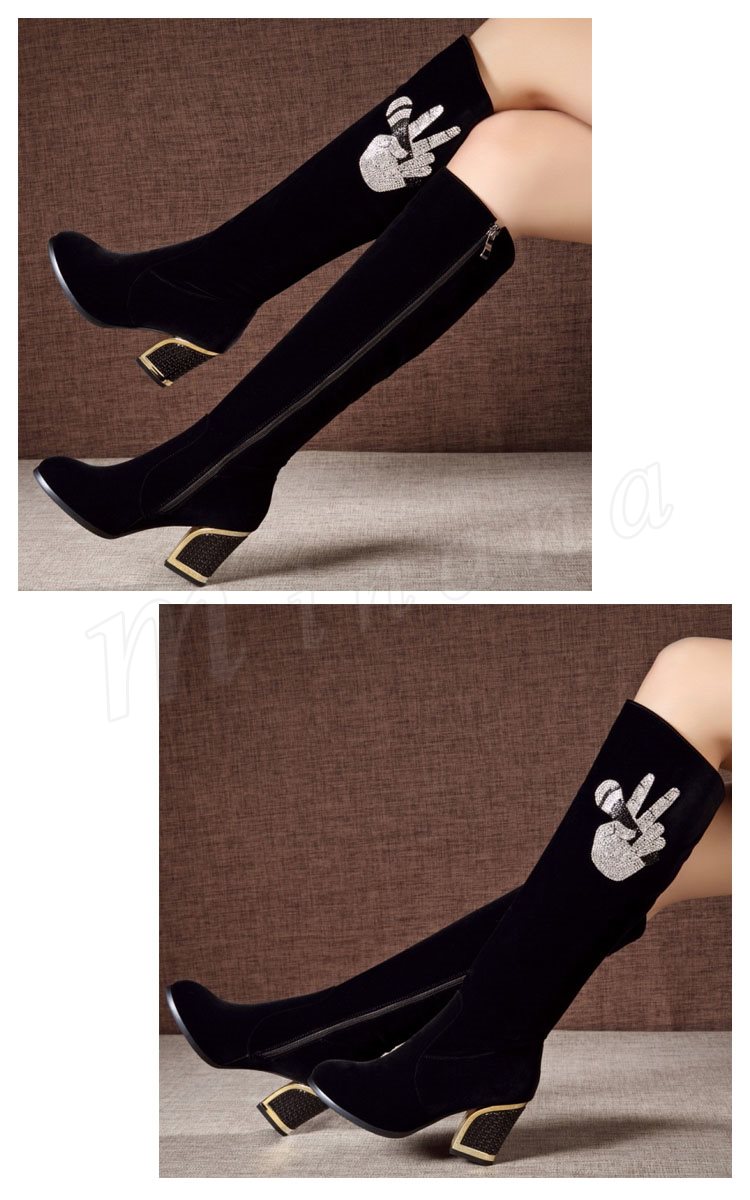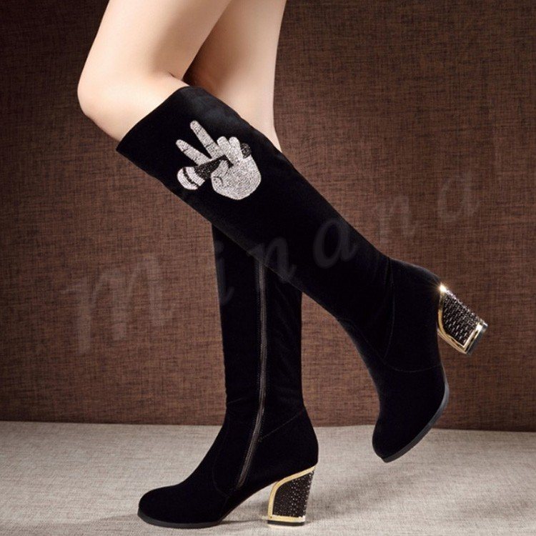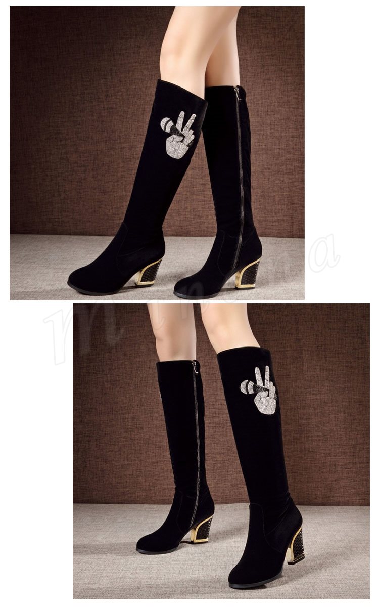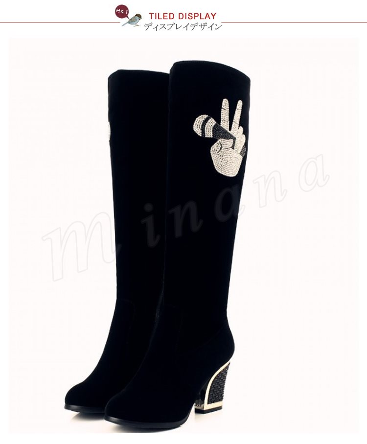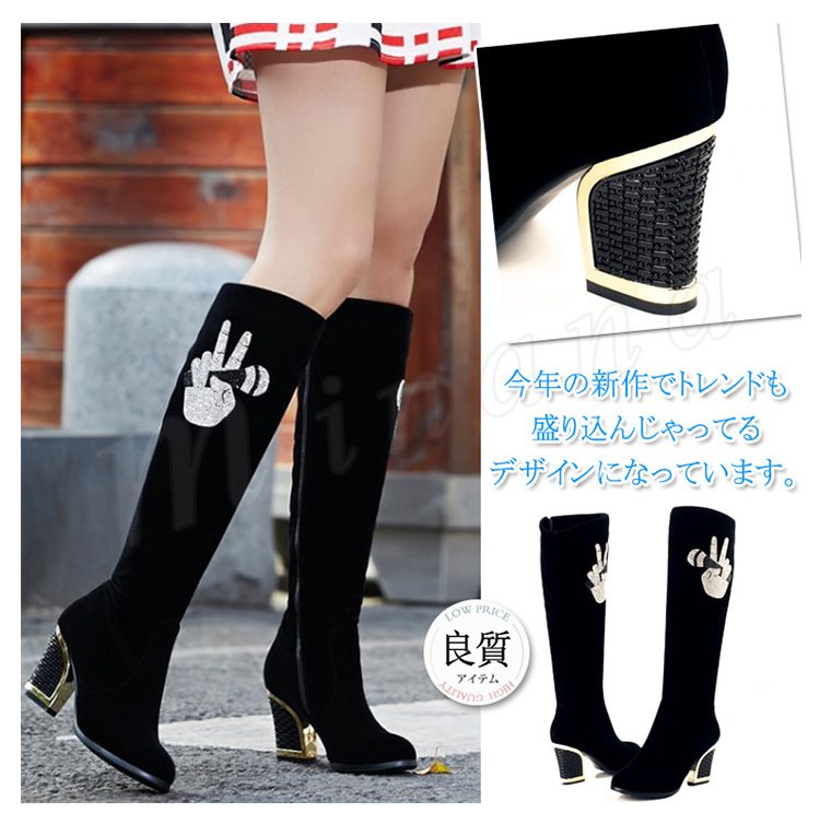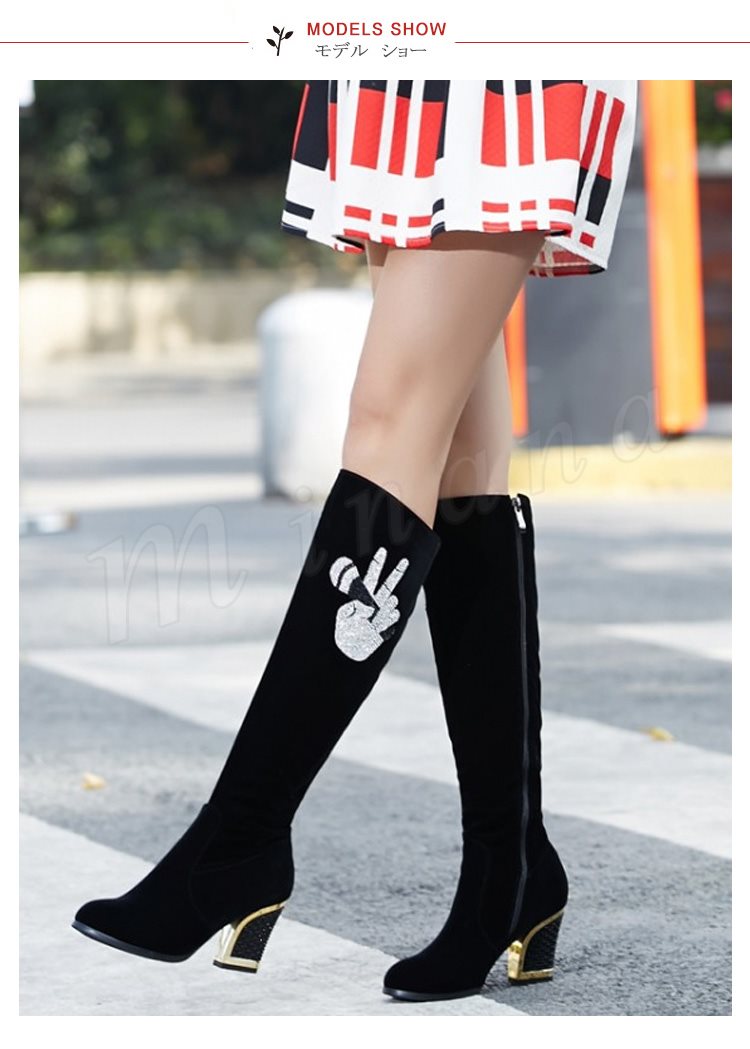 ブーツ レディース 太ヒール 靴 ロング レディースブーツ 大きいサイズ スエード 膝丈 靴 秋 冬 ブラック 裏起毛 boots 靴 レディース靴