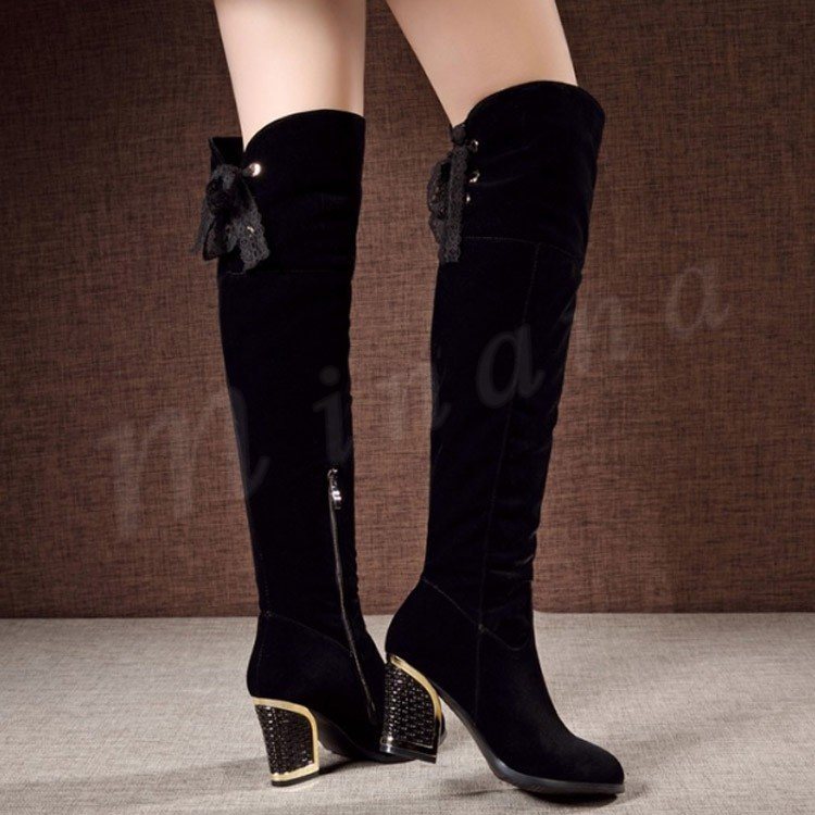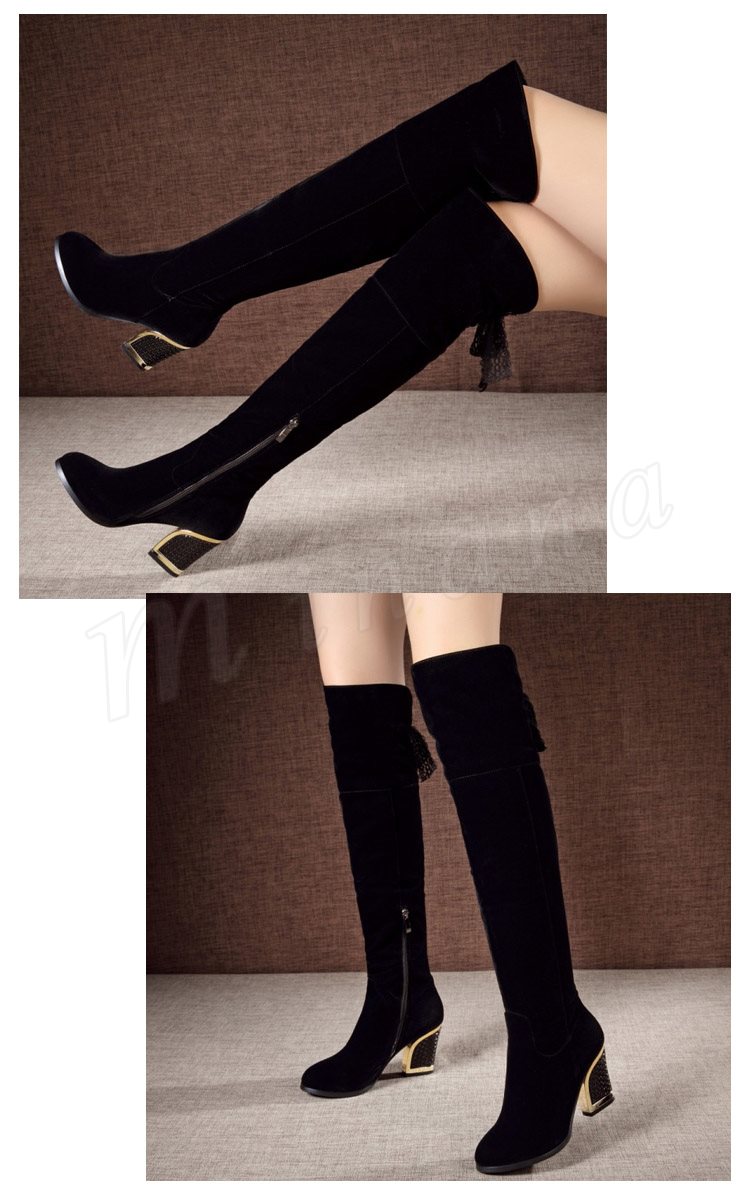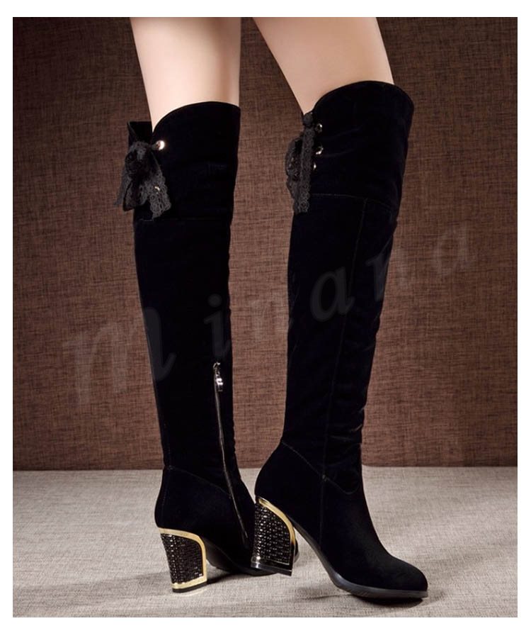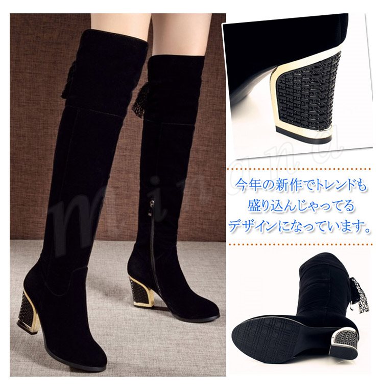 ニーハイブーツ ブーツ レディース ロング 太ヒール ロングブーツ ブラック boots 靴 レディース靴 ニーハイ ロングブーツ 大人 美脚
