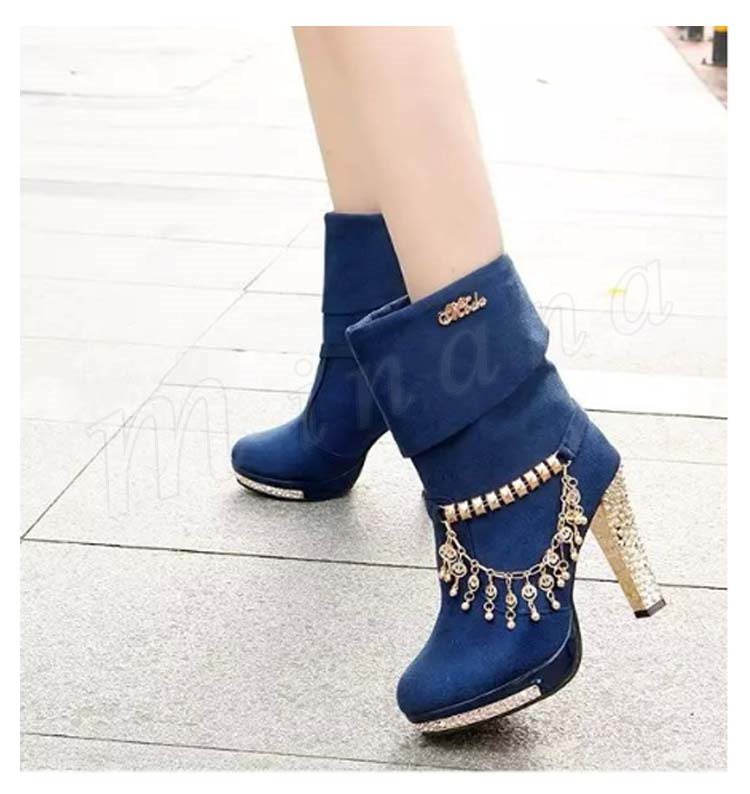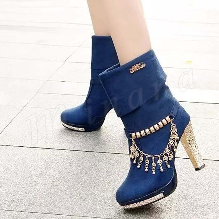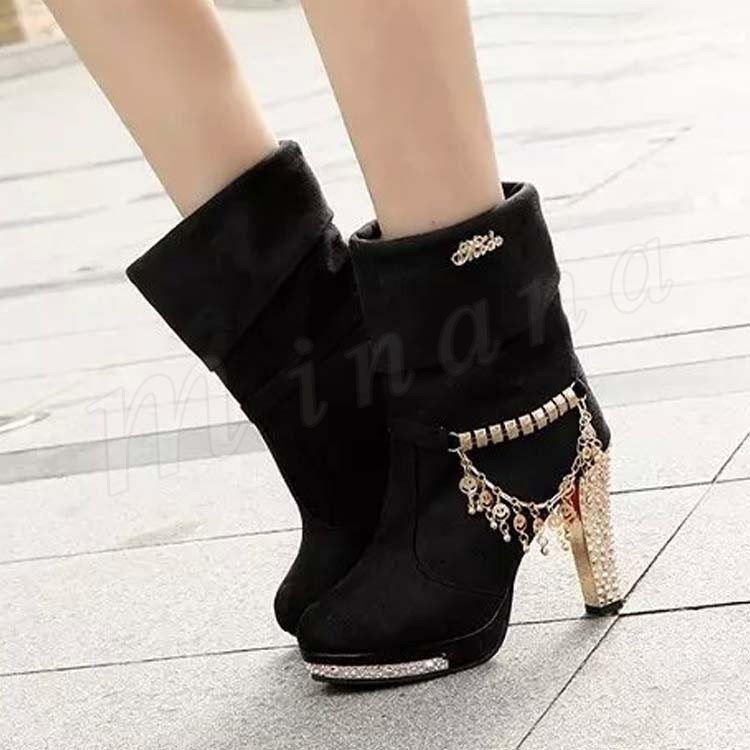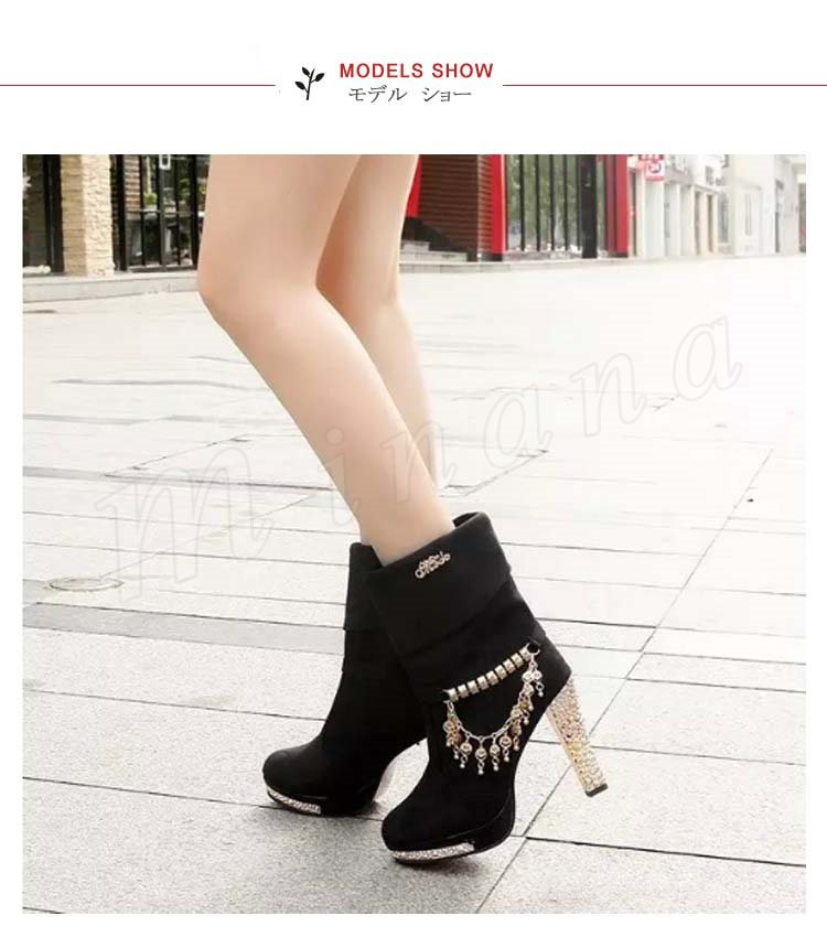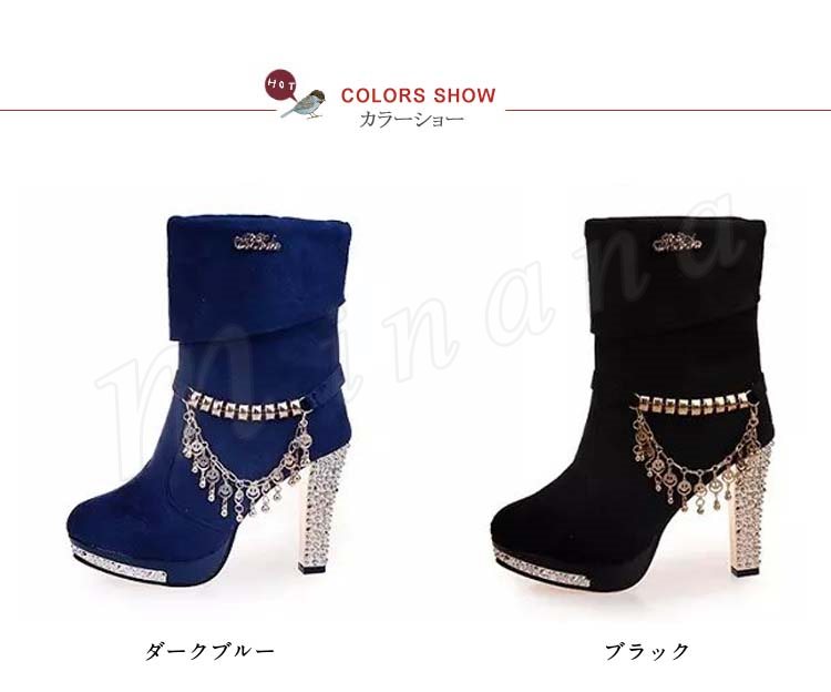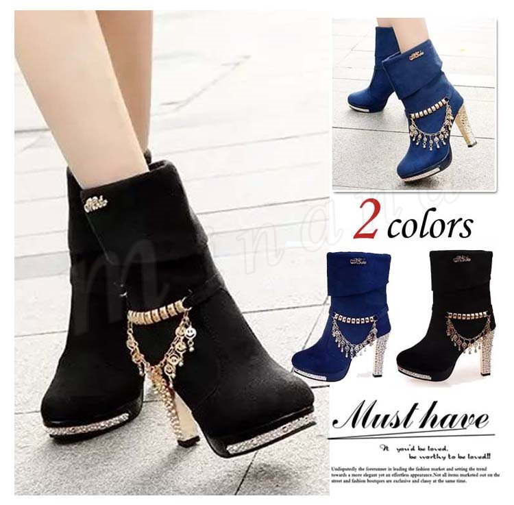 ブーツ ショートブーツ ヒール ゴージャス レディース チェーン キラキラ パーティー パーティ レディース 裏起毛 靴 新作