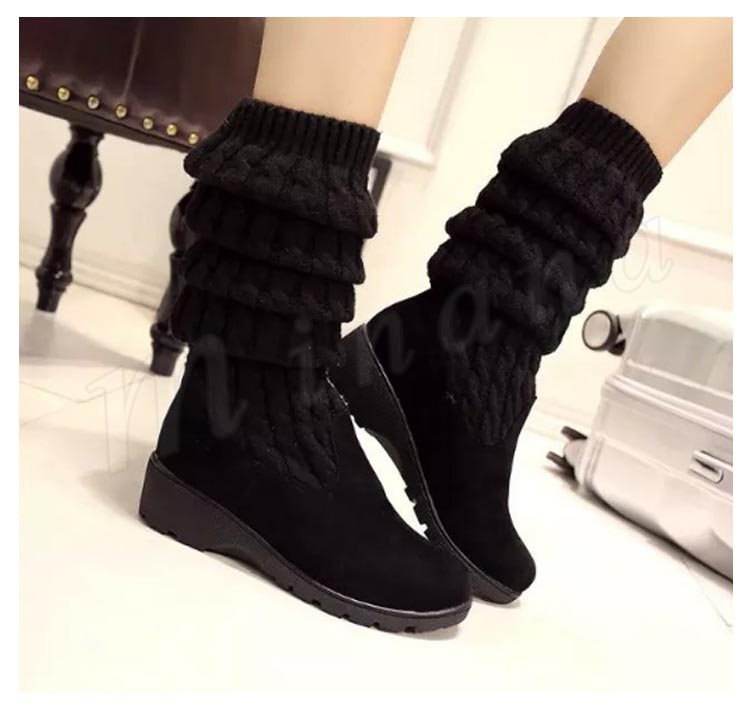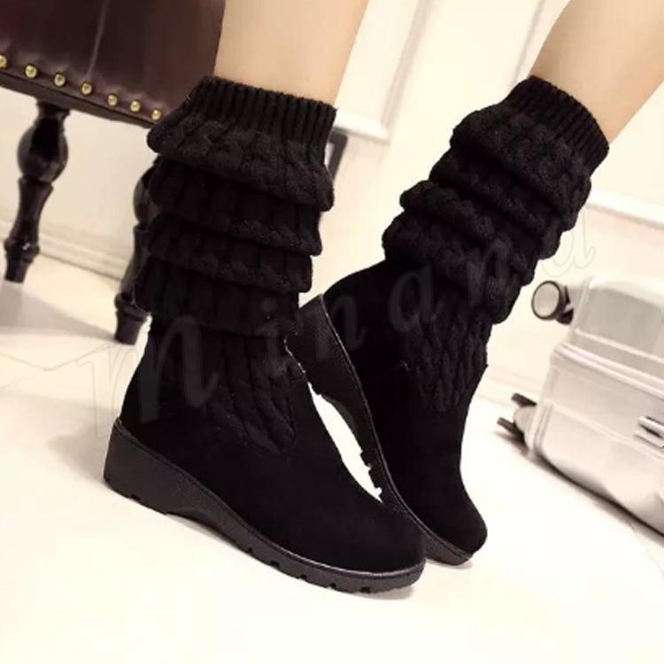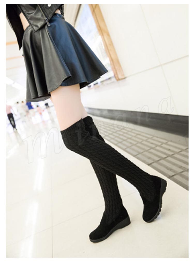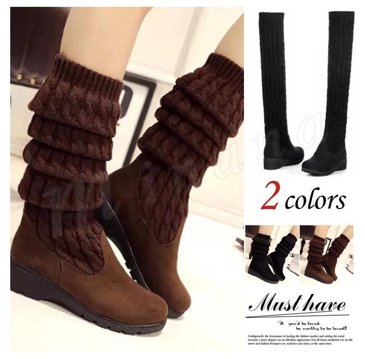 ロングブーツ レディース ブーツ ロング丈 おしゃれ 可愛い シューズ 靴 ブラック ニット 秋冬新作 35/36/37/38/39