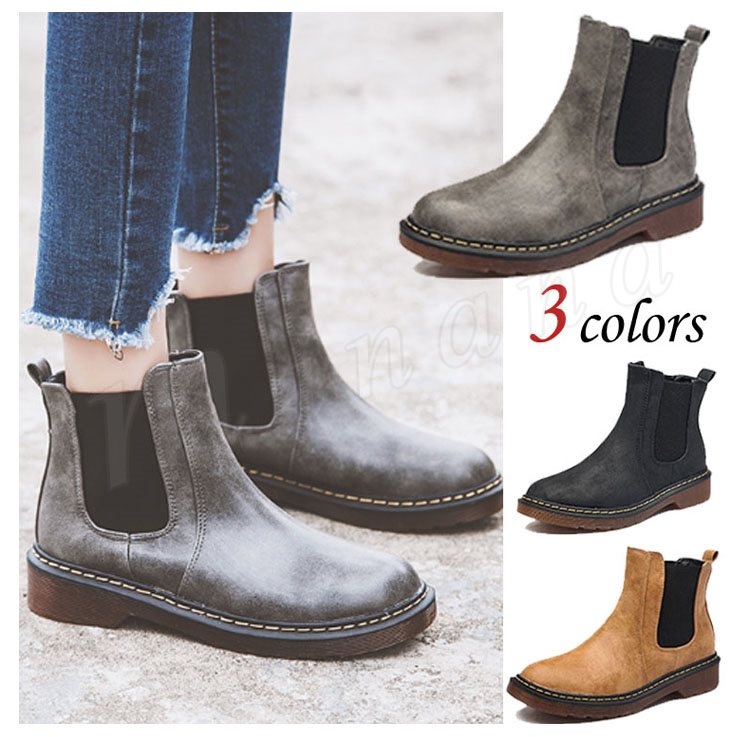 puレザーブーティ レディース ショートブーツ サイドゴアブーティー ローヒール ラウンドトゥブーティ 裏起毛ブーティー 太ヒール 美脚ブーツ