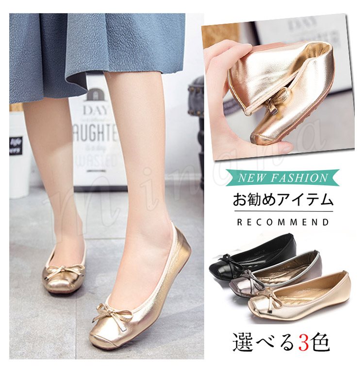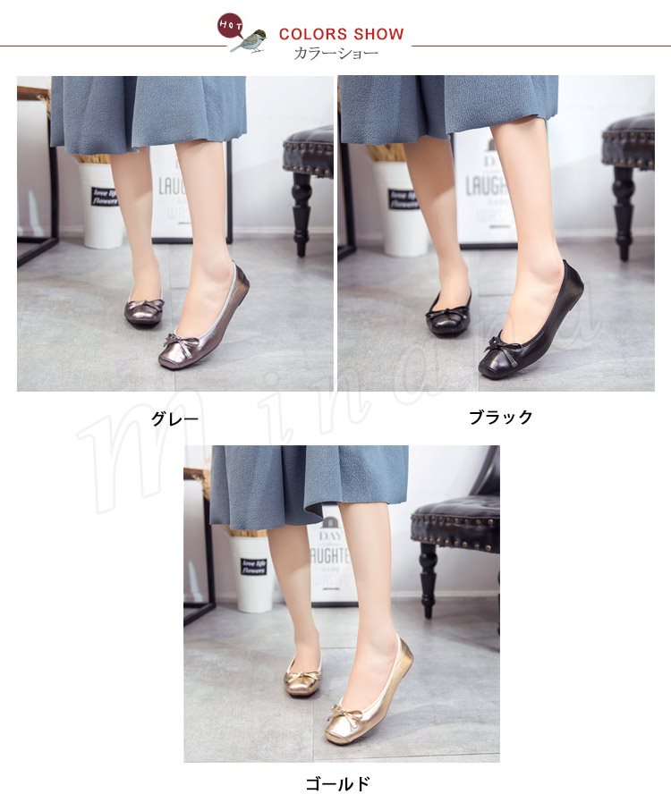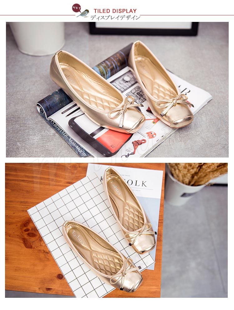 パンプス ぺたんこ スクエアトゥ レディース リボン バレエシューズ フラット 可愛い 痛くない 靴 シューズ 新作