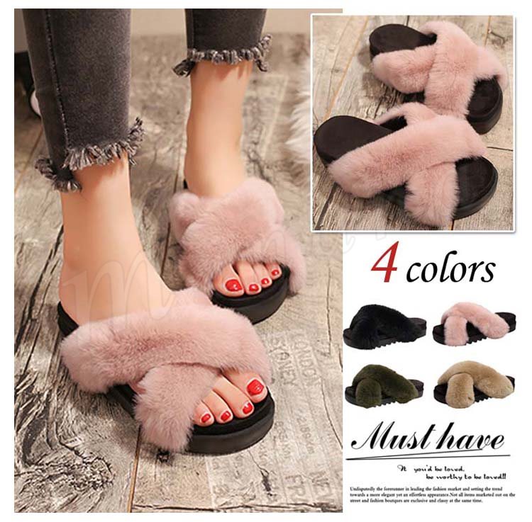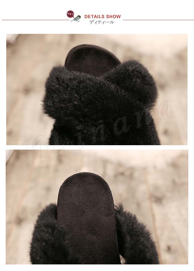 【フワフワ感】スリッパ ファー付き レーディース ファーサンダル ローヒール 美脚 サンダル ミュール