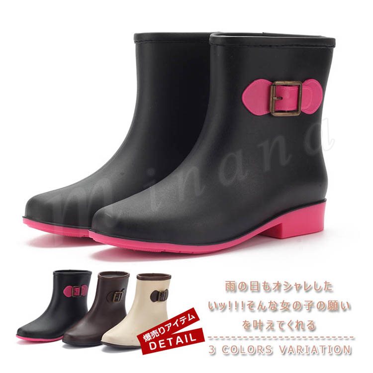 レインブーツ レインシューズ レディース ショート 梅雨 ヒール 長靴 雪 人気 バイカラー 美脚 台風 大雨 ラバーシューズ ラバーブーツ 防水ブー