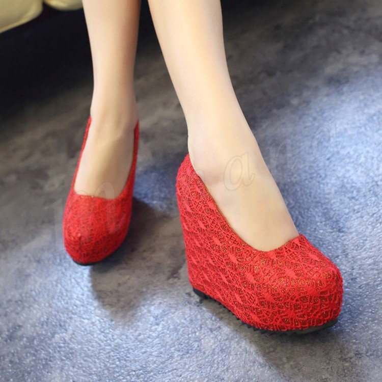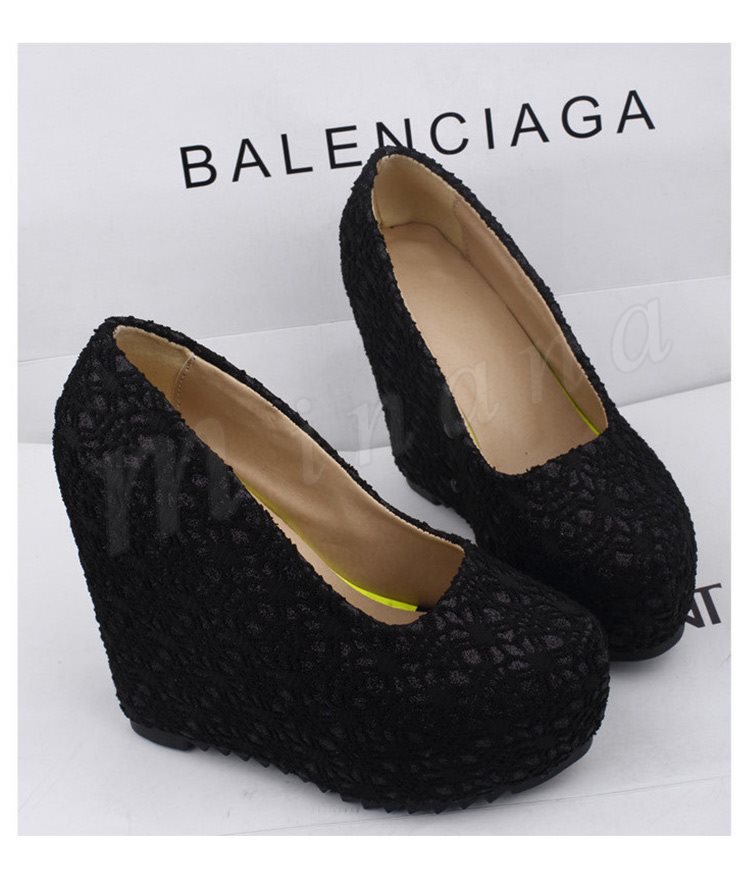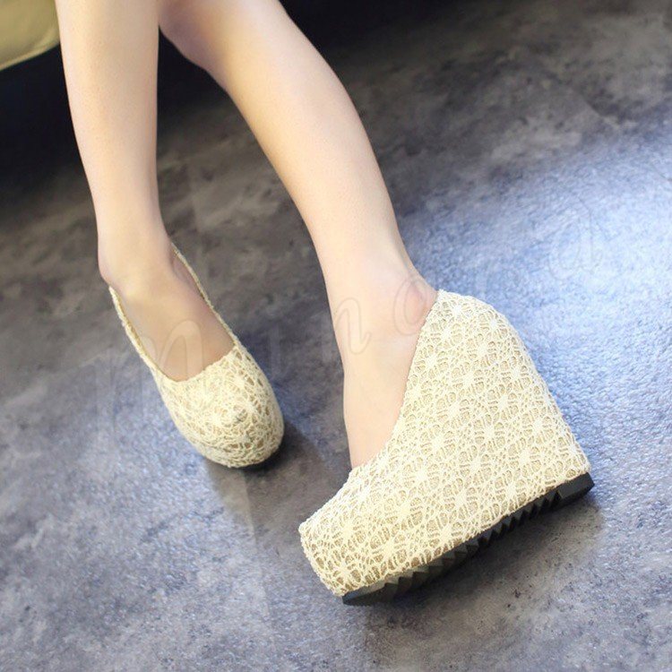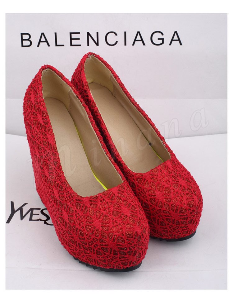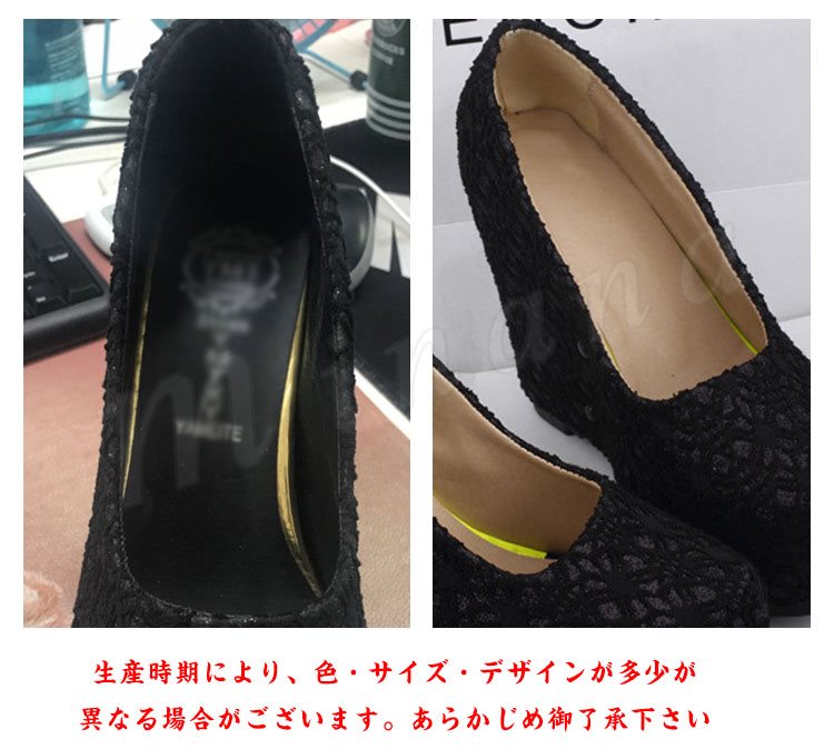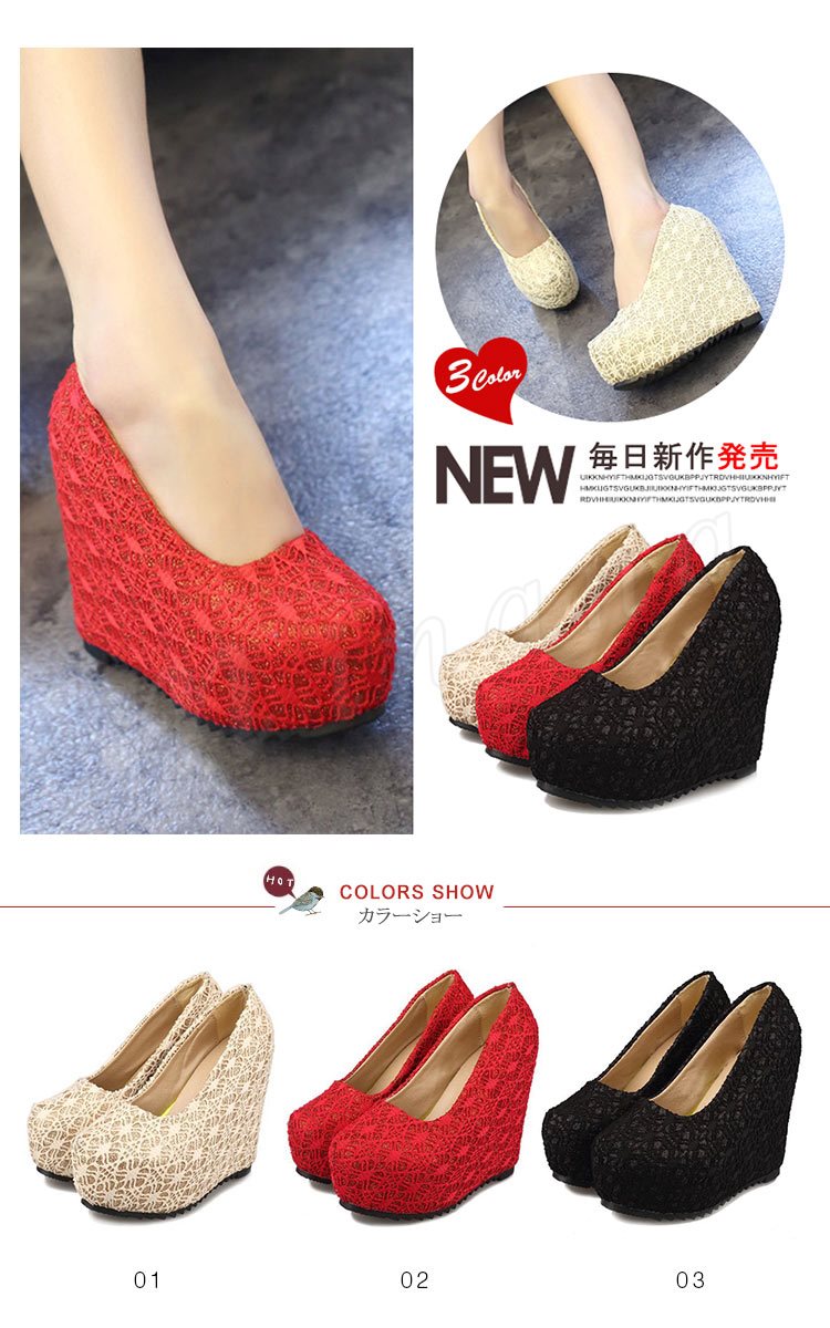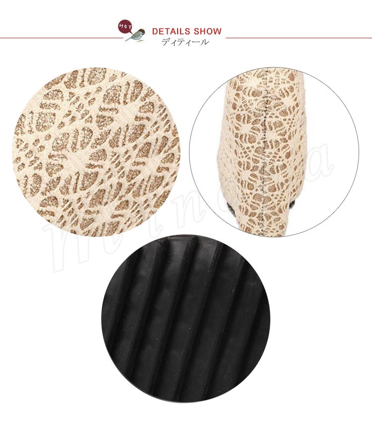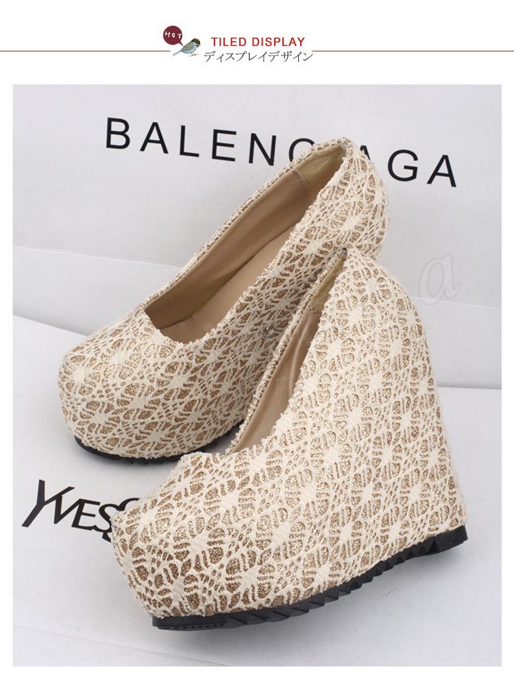 ウェッジパンプス ラメ入り レースデザイン ラウンドトゥ (全3色)