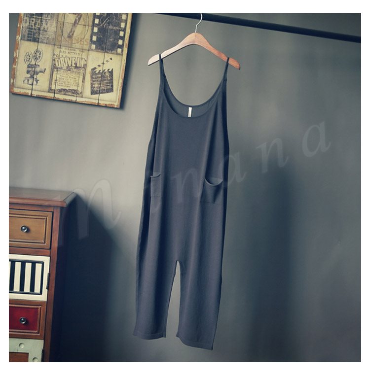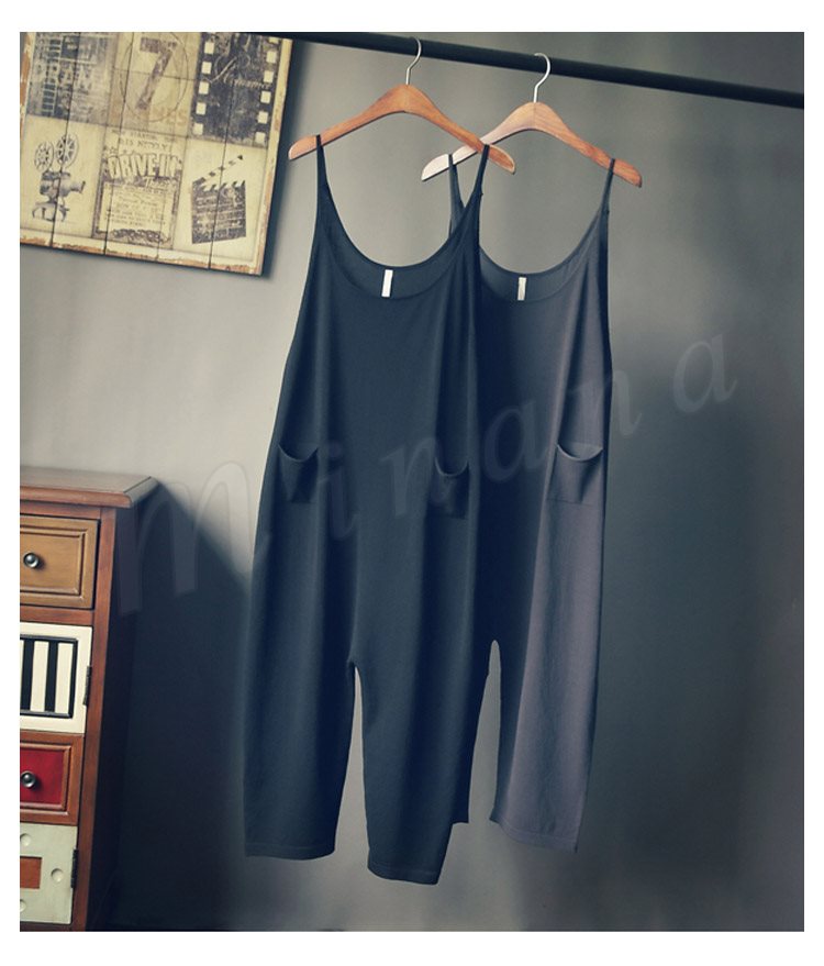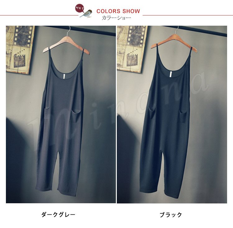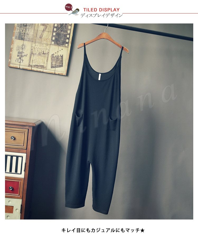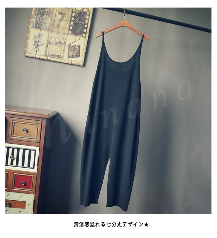 レディースサロペットパンツオールインワンオーバーオール森ガール系七分丈パンツサルエルパンツカジュアルパンツポケット付きゆるパンツ
