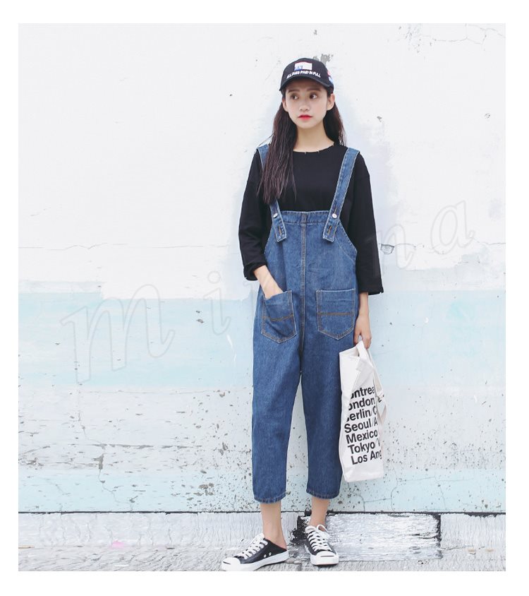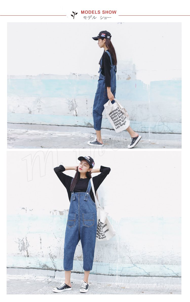 サロペット デニム レディース オールインワン カジュアル 定番 パンツ 9分丈 体型カバー シンプル デイリー 上品 美脚 小尻 S/M/L