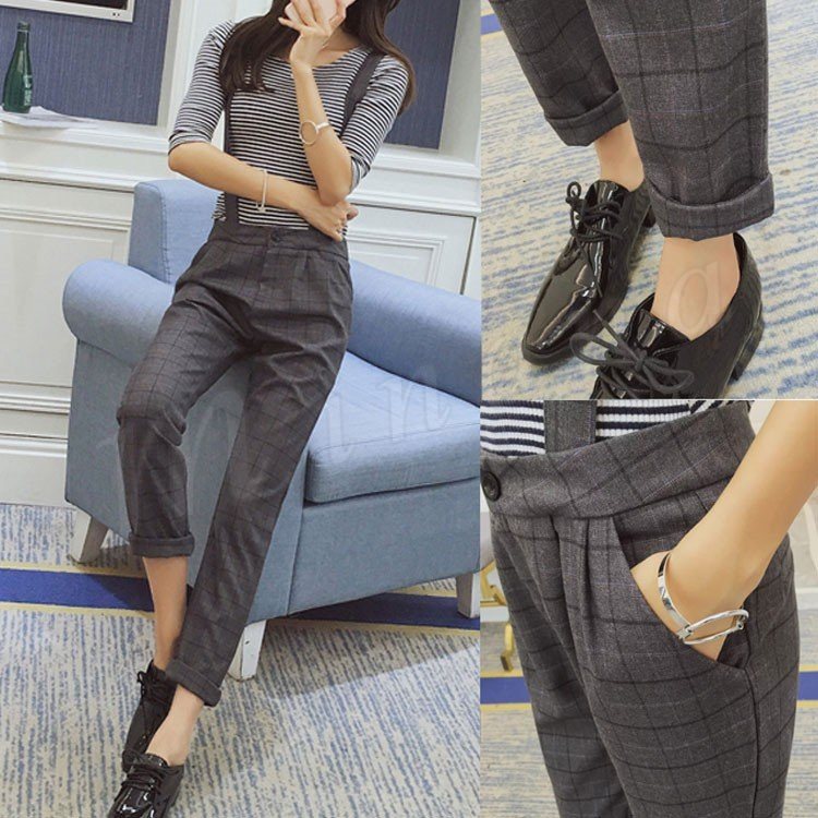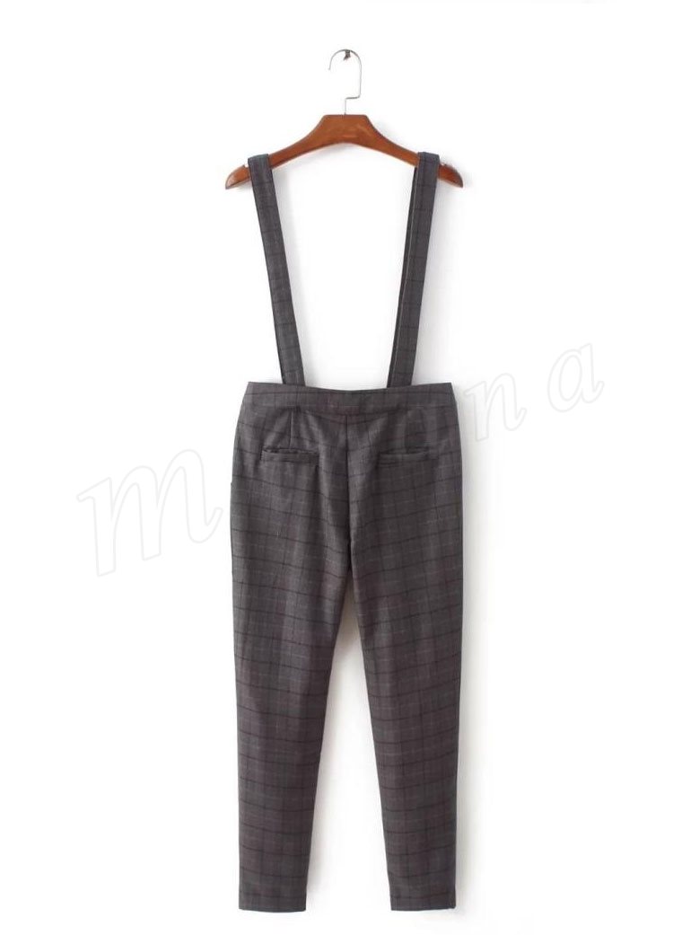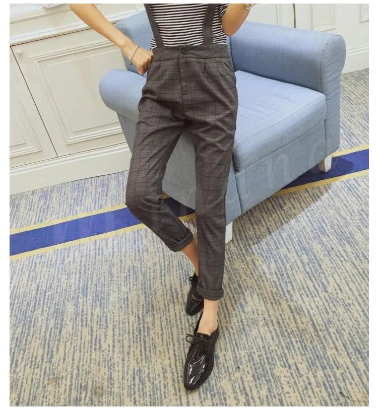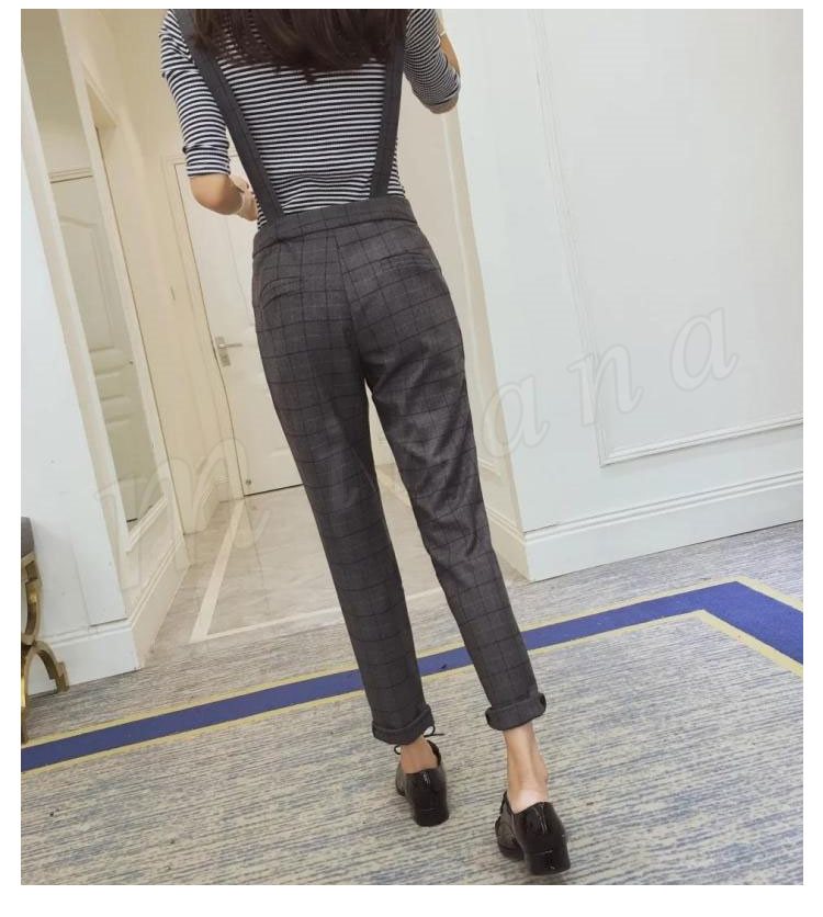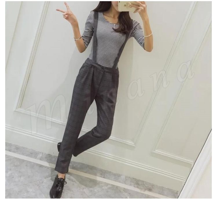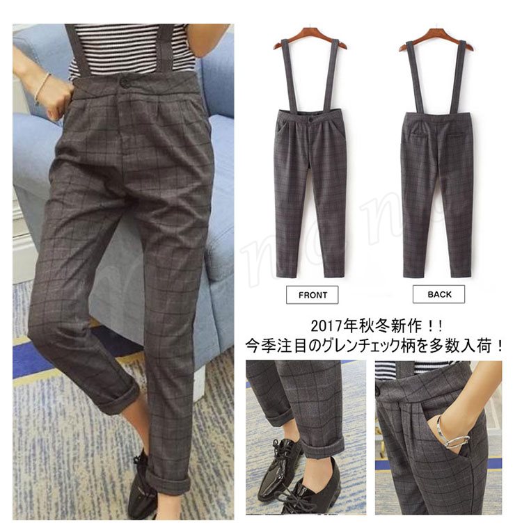 グレンチェック クロップドパンツ サロペット おじ おじ柄 パンツ ハイウエストパンツ ハイウェスト あったか 防寒 シンプル レディース 2