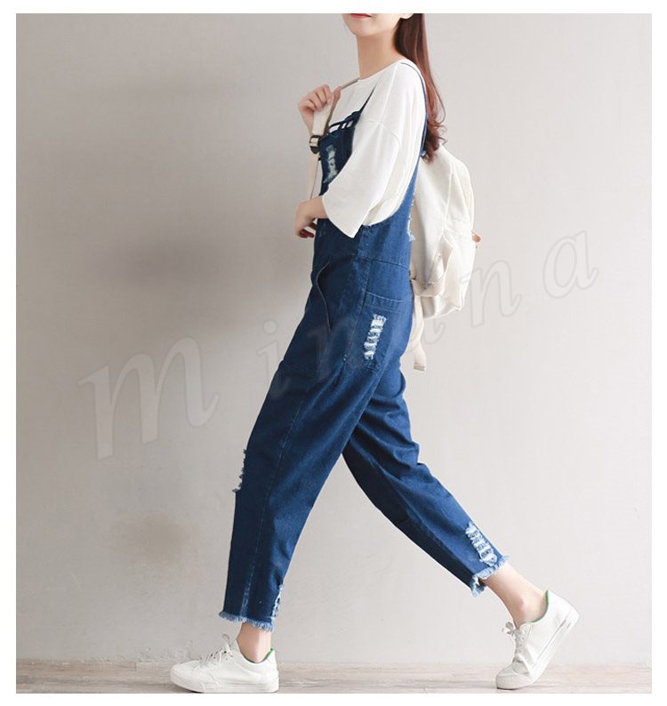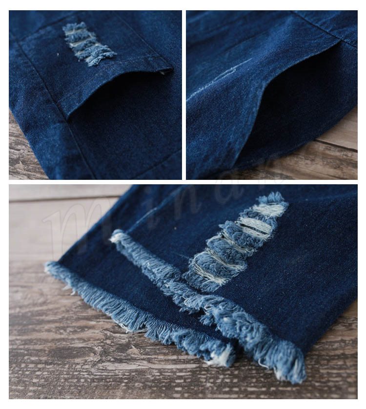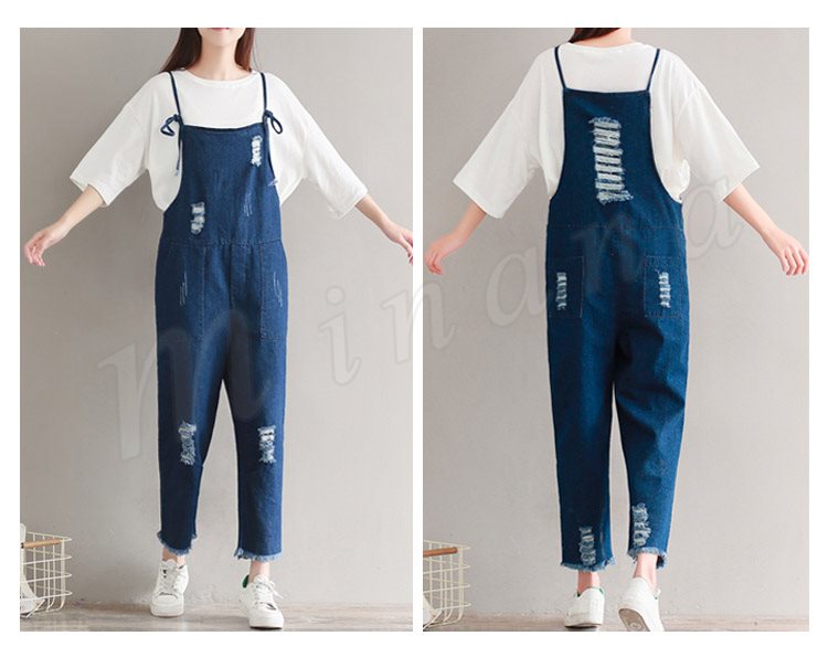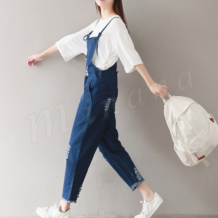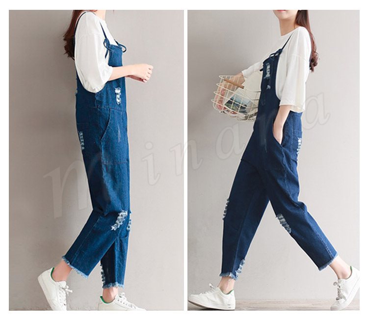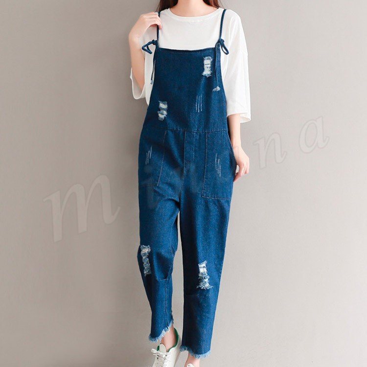 サロペット デニム オーバーオール レディース カットオフ ダメージ 七分丈 ボタン付き レディース ワンピース
