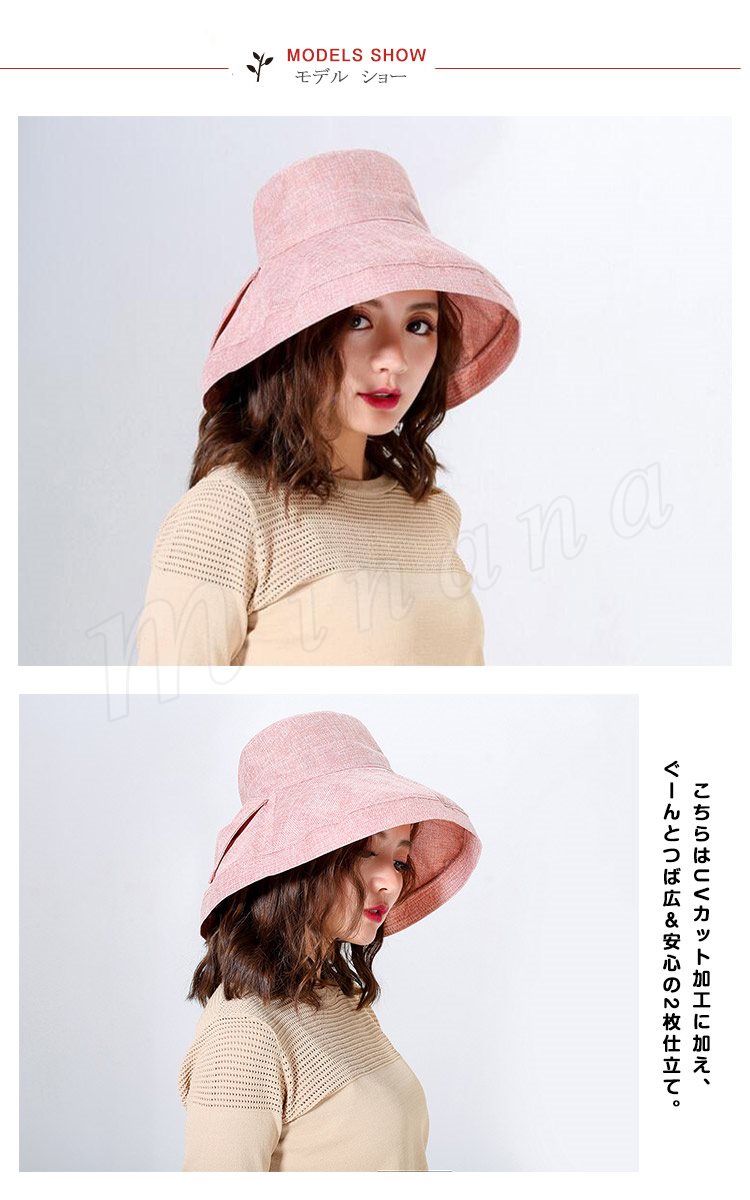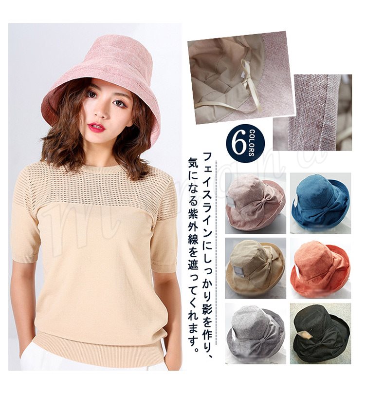 帽子/レディース/UVカット/綿素材のオシャレなUVハット/小顔効果/紫外線/100%カット/日よけ帽子/紫外線対策/つば広ハット