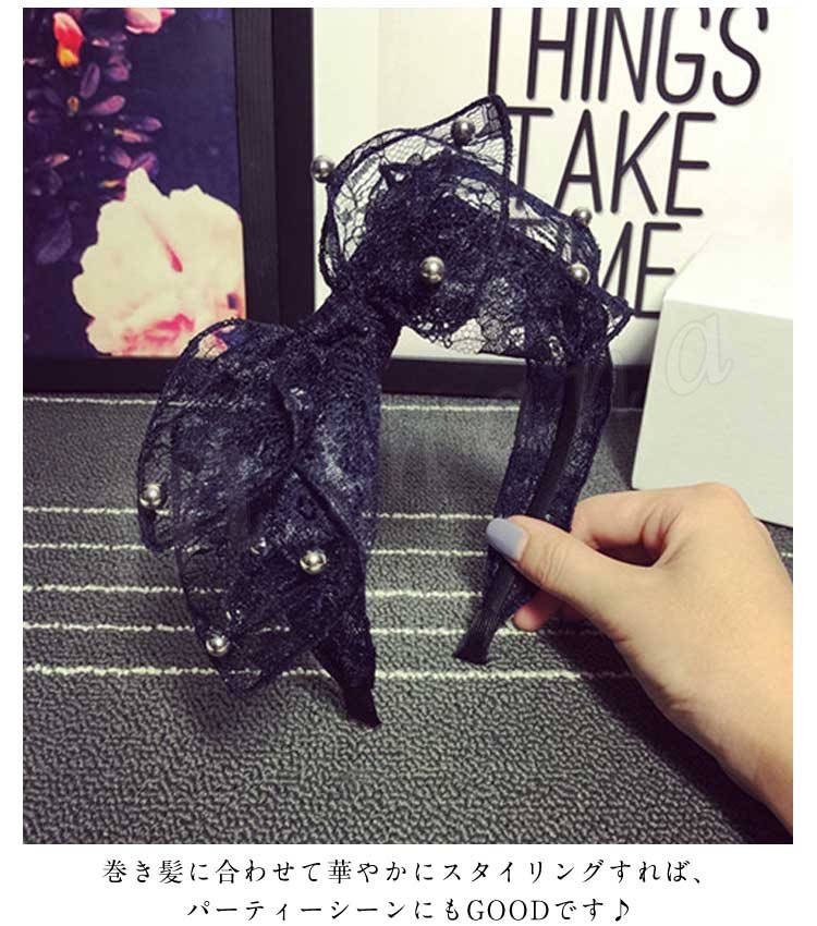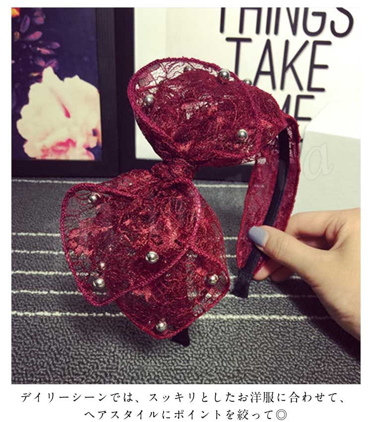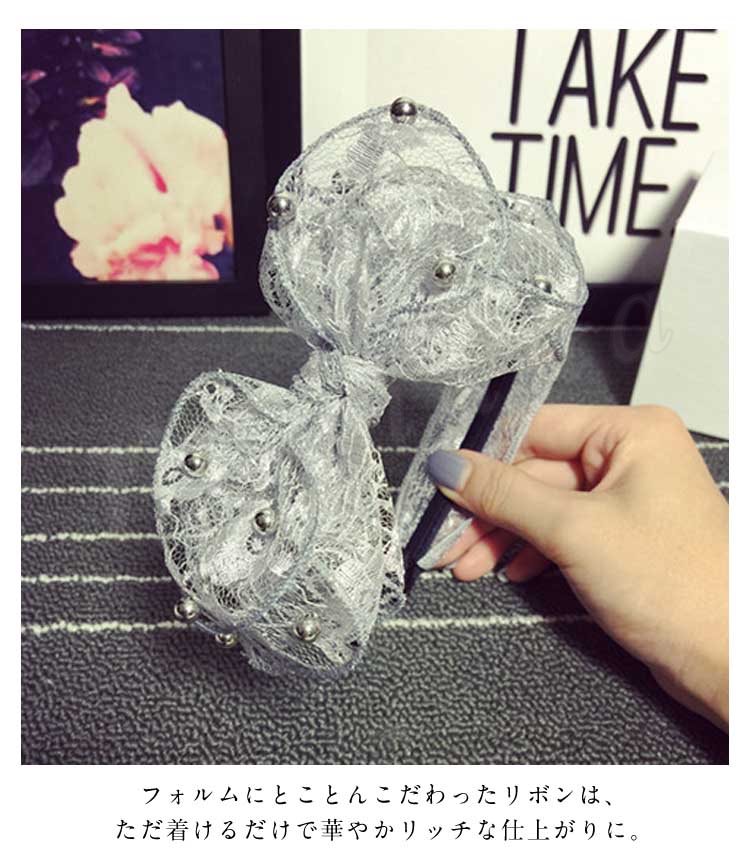 リボンレースリボンカチューシャカチュームレース髪飾りヘアーアクセサリーパーティーアクセサリー二次会結婚式お呼ばれ
