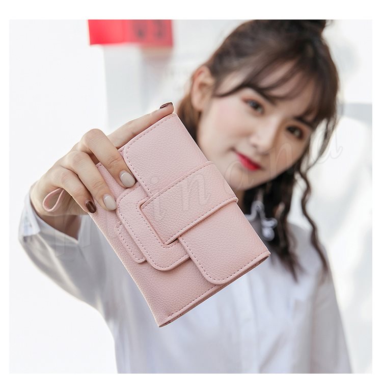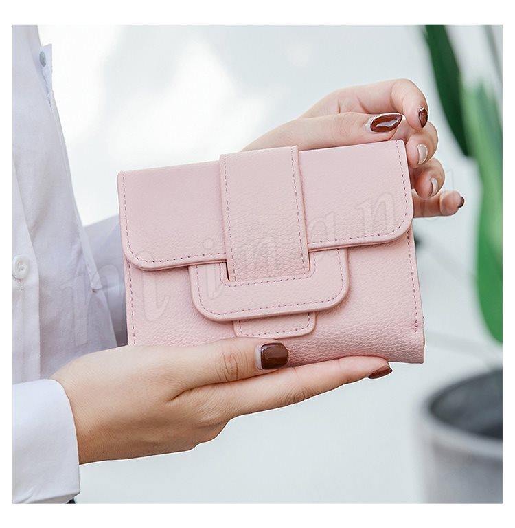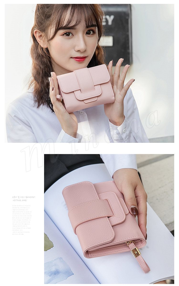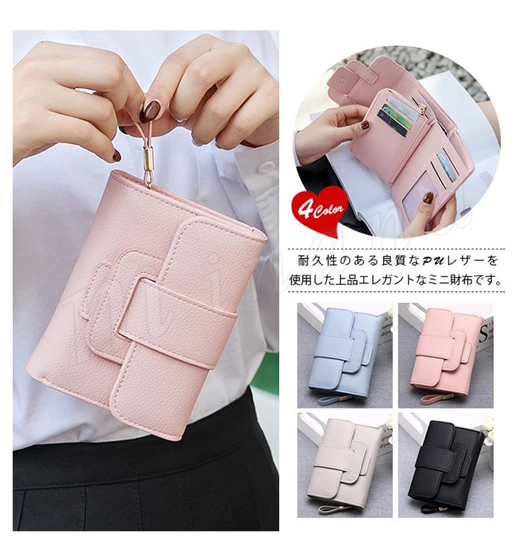 ワイドベルトデザイン三つ折りミニ財布・4色展開【 フェイクレザー PUレザー 人造レザー 合成皮革 レディース 財布 ミニ財布 ミニウォレット