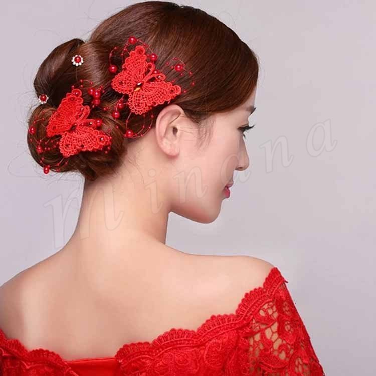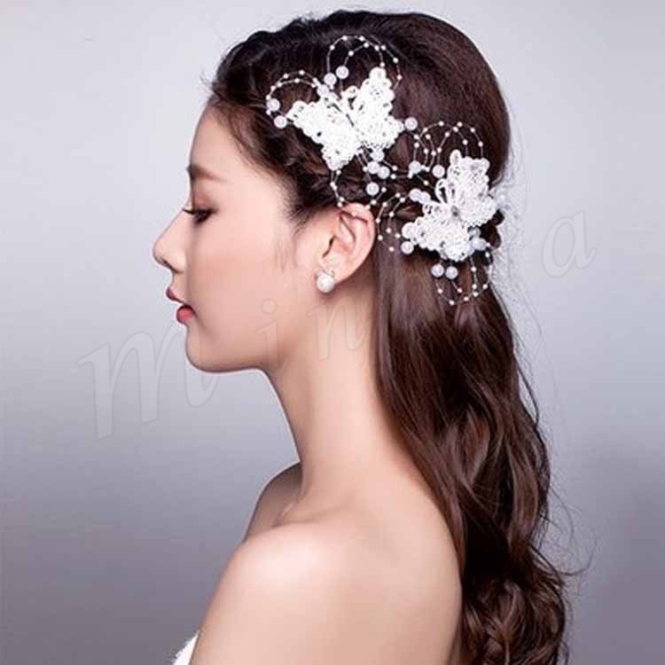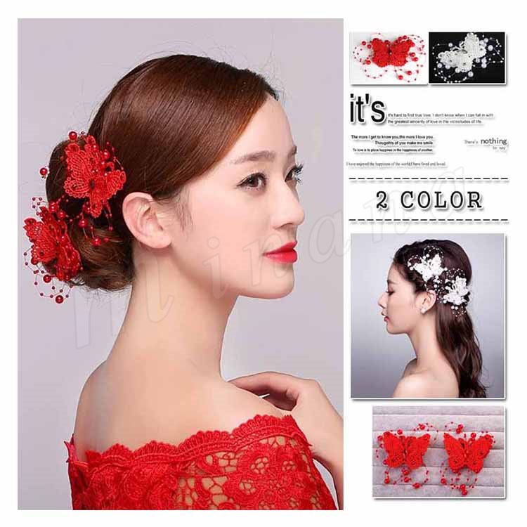 ヘアピン アクセサリー 蝶 2色 ウエディング 結婚式 花嫁 花ピン パーティー?