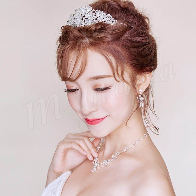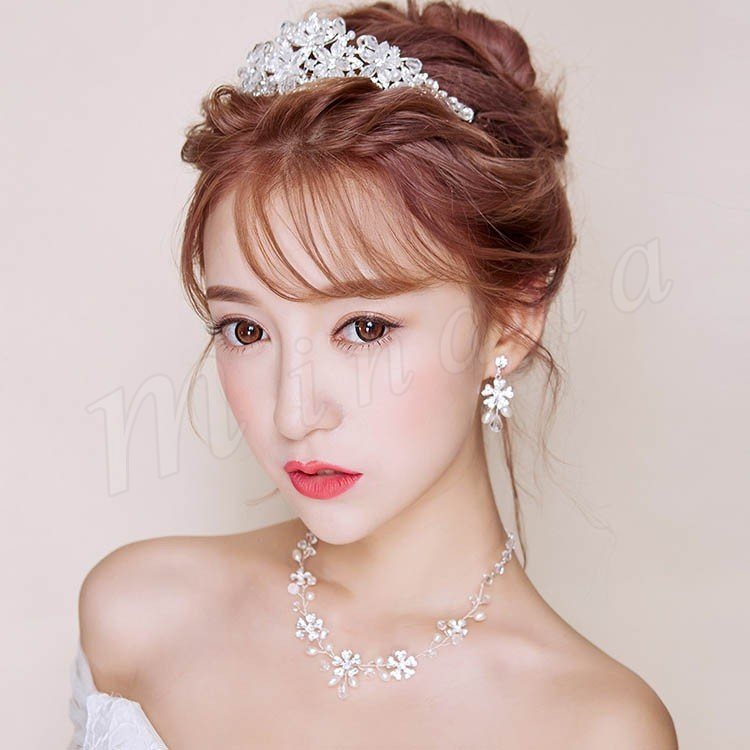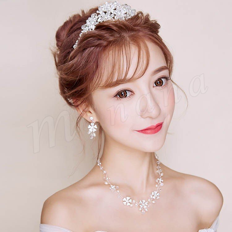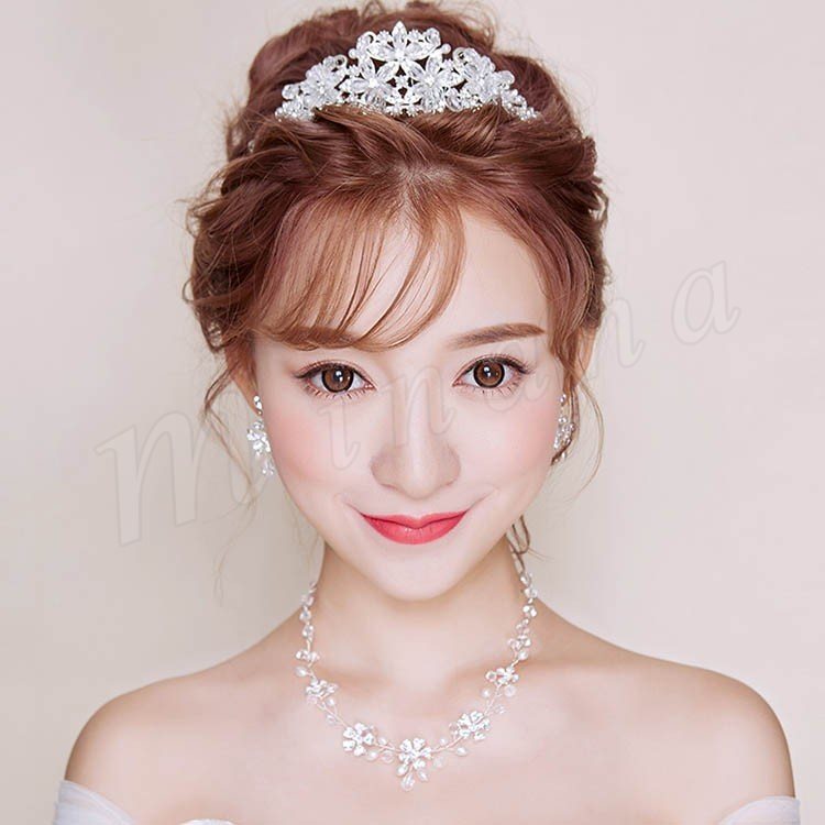 ウエディングヘッドドレス バックカチューシャ 髪飾り ヘアアクセサリー ブライダル 結婚式 二次会 花嫁ティアラネックレスピアス 3点セット