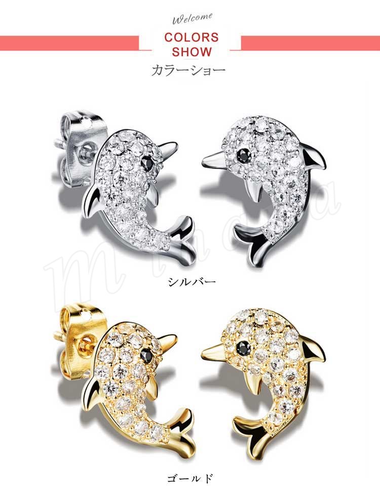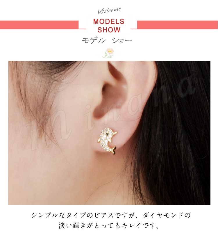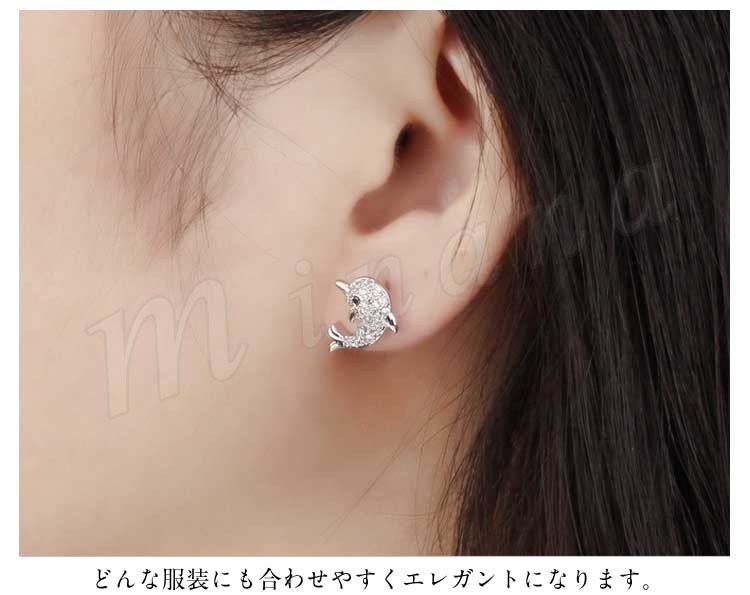 ピアス イヤリング レディース アクセサリー 一粒ピアス イルカ ダイヤモンド 女性用 輝き キラキラ シンプル おしゃれ 可愛い 華奢 プレ