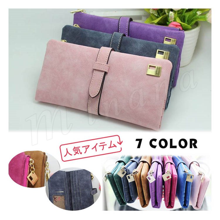 レディース 財布 ウォレット 長財布 ベルト チャック 小物 ファッション雑貨 フェイクレザー スエード カラー カラフル 無地 シンプル チ