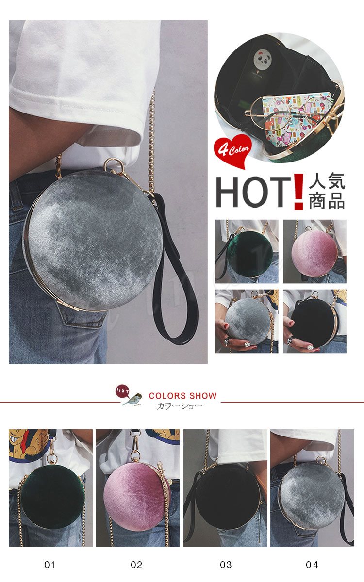 絶対に被らない個性的な人にピッタリ!まん丸ミニショルダーバック★バッグ/かばん/鞄//ショルダーバッグ/チェーン/ハンドバック/かわいい/がま口/丸/