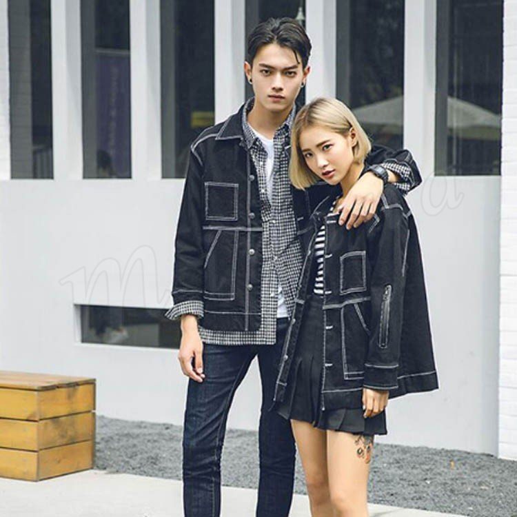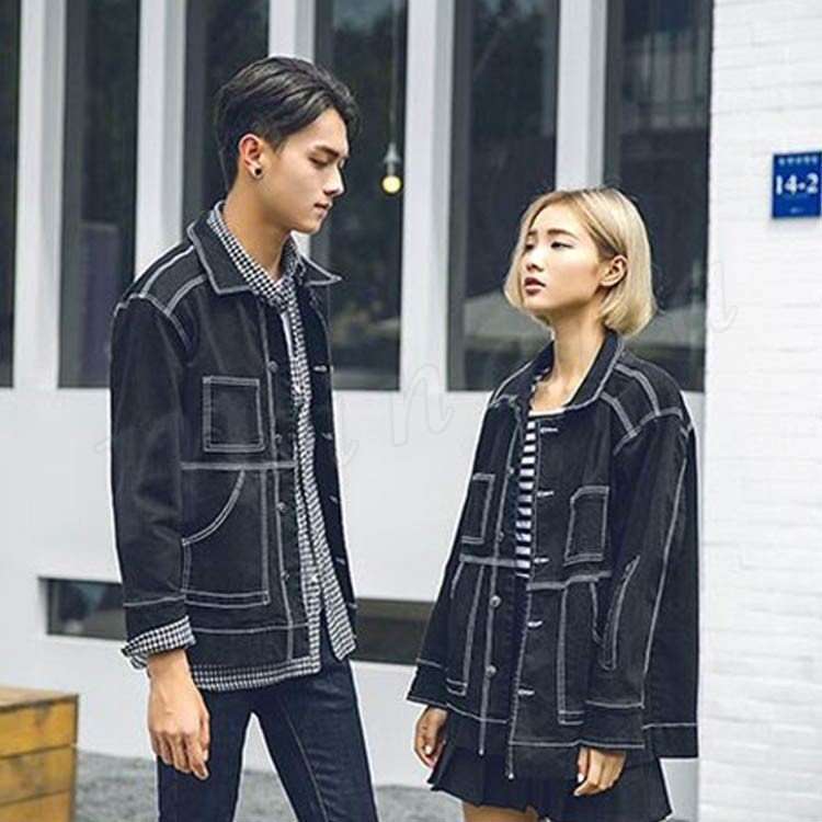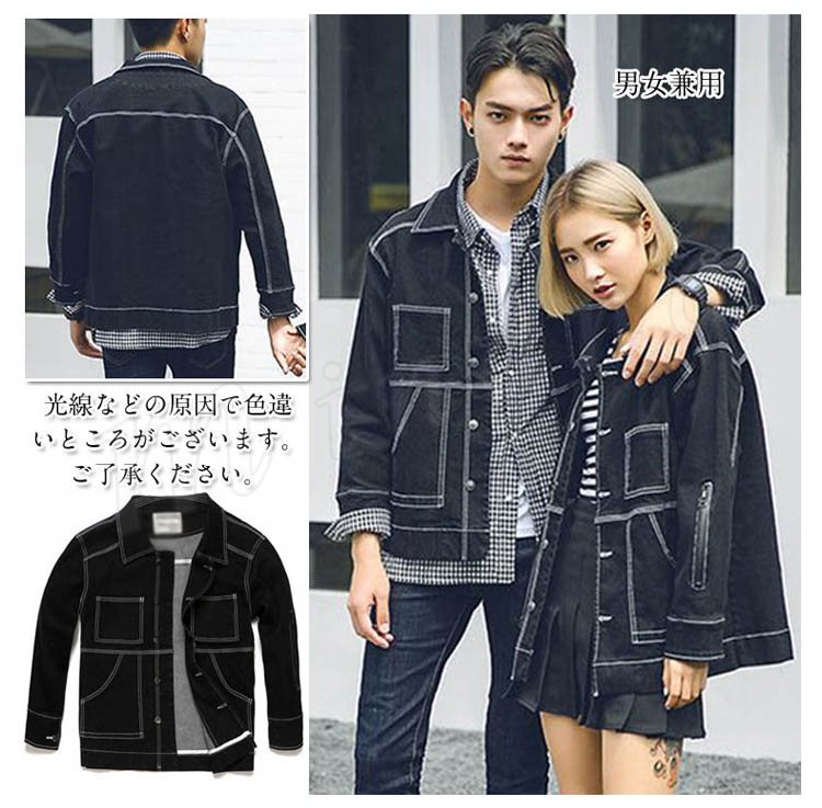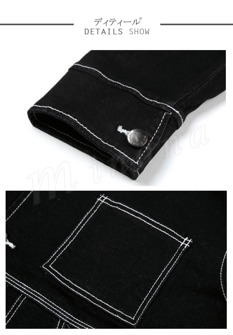 デニムジャケット メンズ アウター ボタンフライ ステンカラー ステッチ 無地 ブラックデニム 羽織 アメカジ カジュアル 大きいサイズ メン
