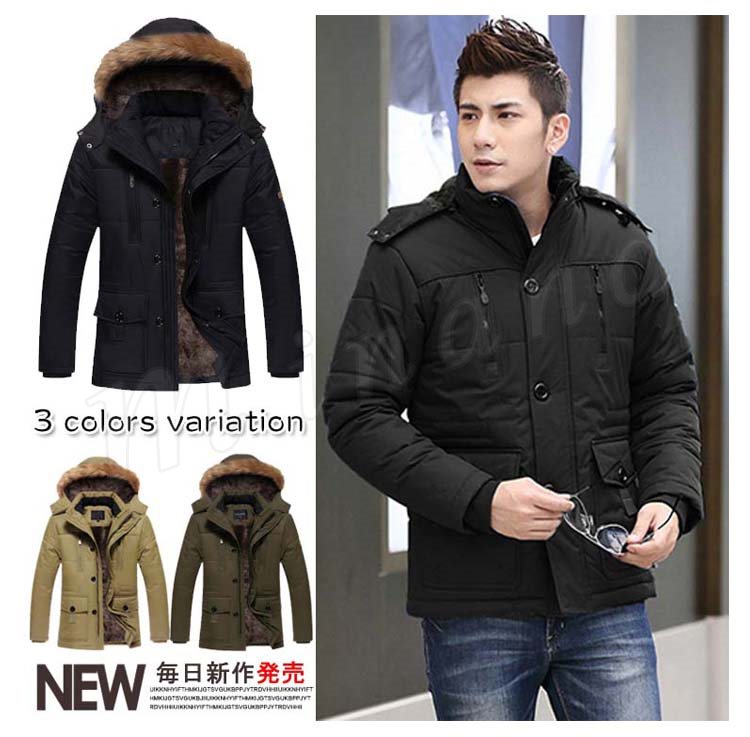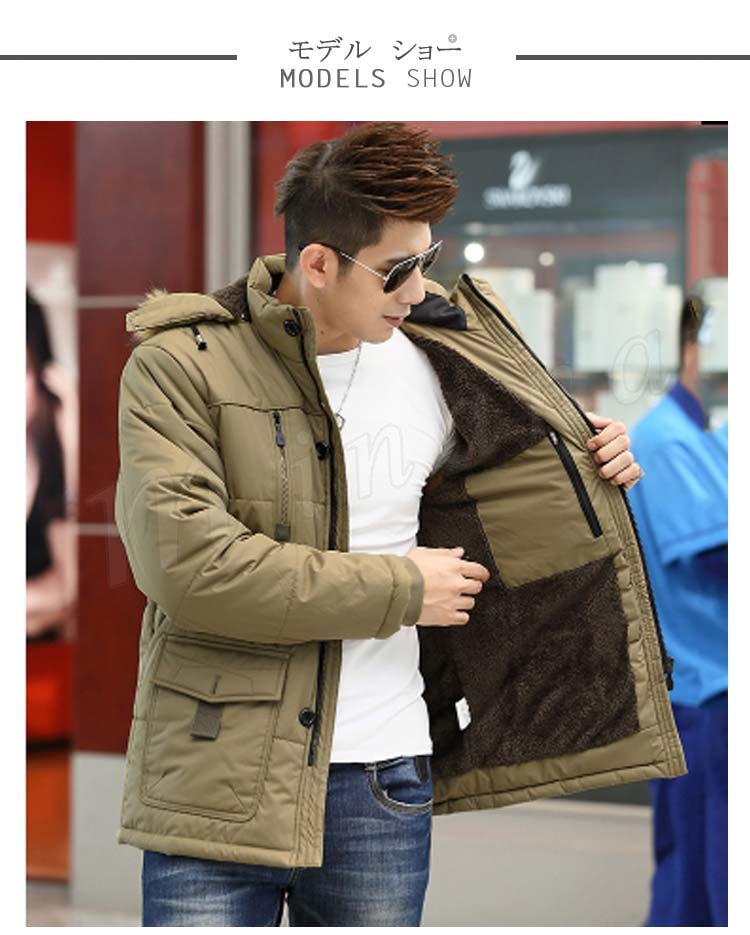 メンズコート モッズコート アウター ラクーンファー付き 裏地ボア 帽子付き 裏起毛 メンズ 無地コート 帽子付き 男性用 冬物 厚手ダウンコ