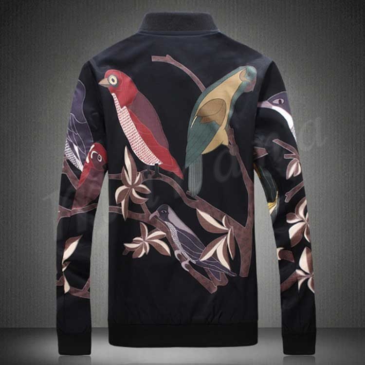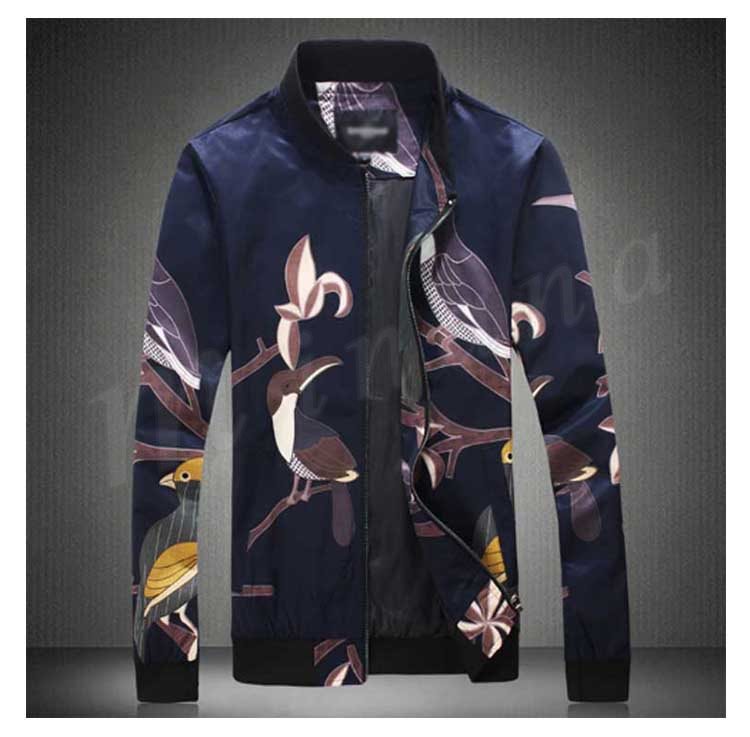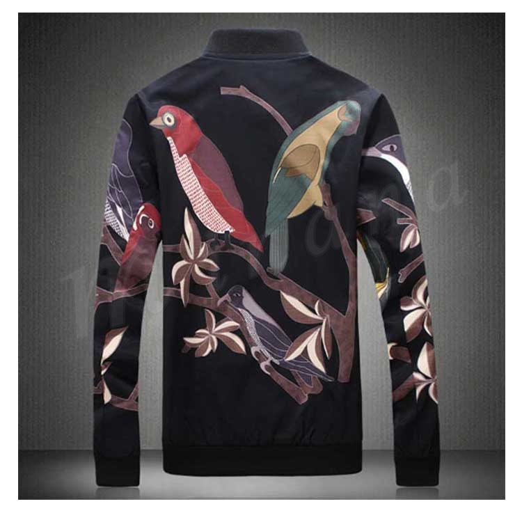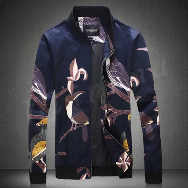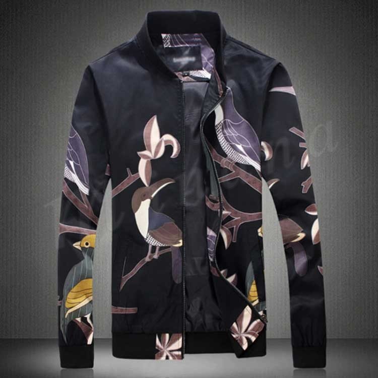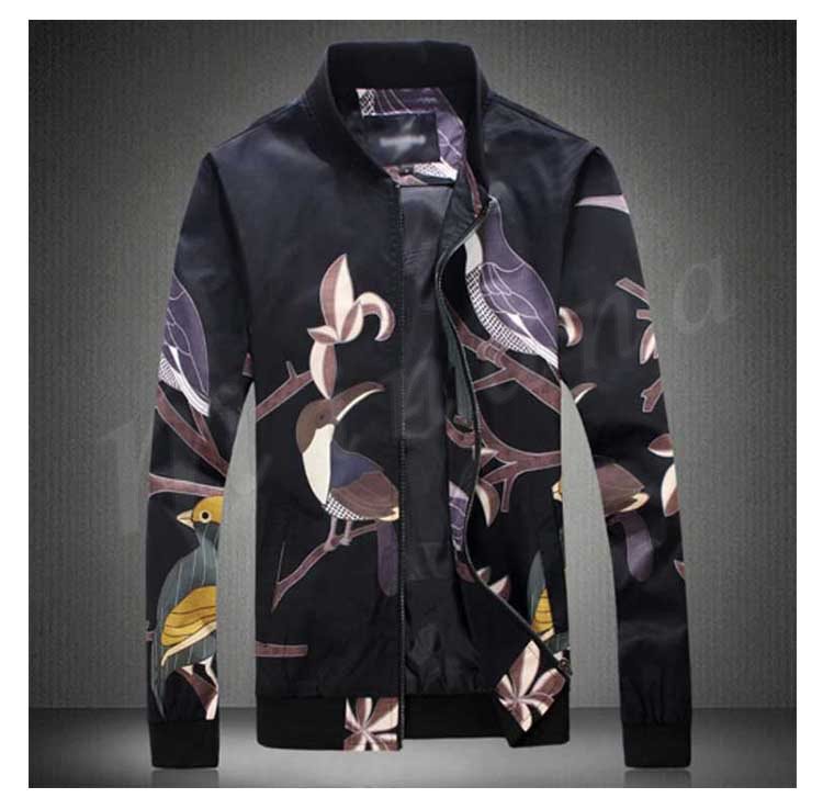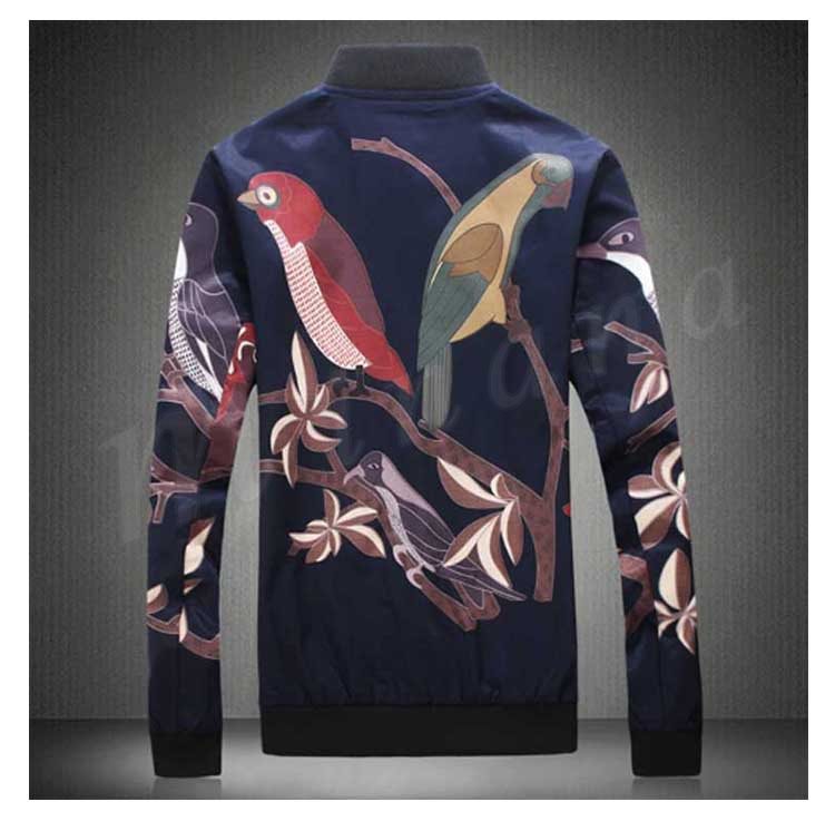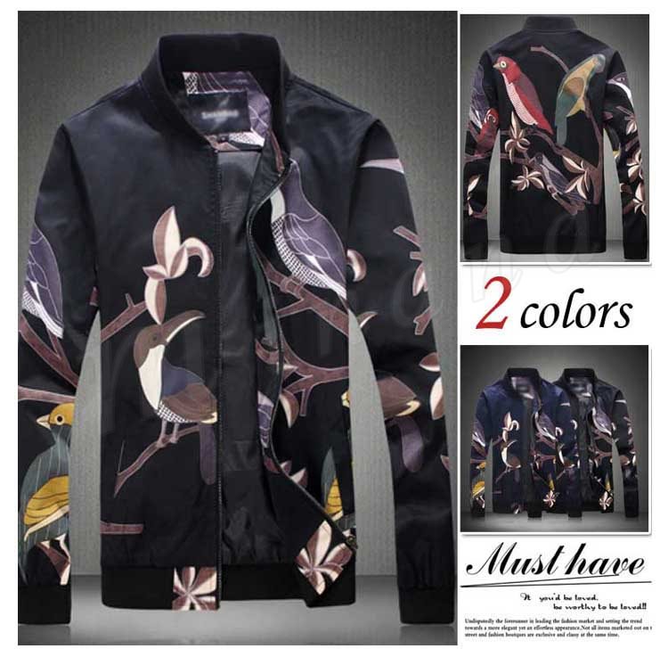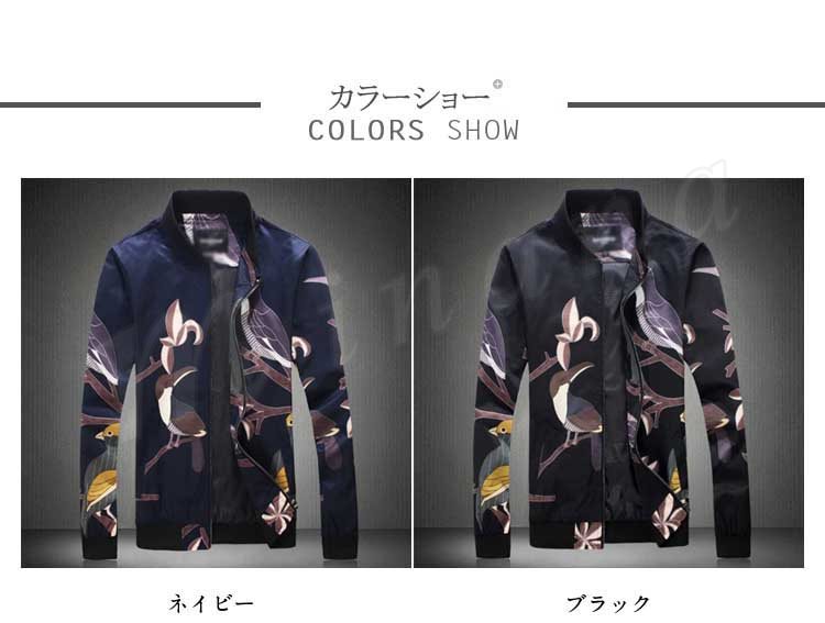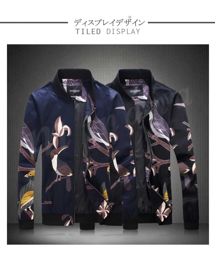 メンズ ジャンパー ジャケット ブルゾン カジュアル 鳥柄 秋 秋物 細身 スリム 紳士 お兄系 大きいサイズ