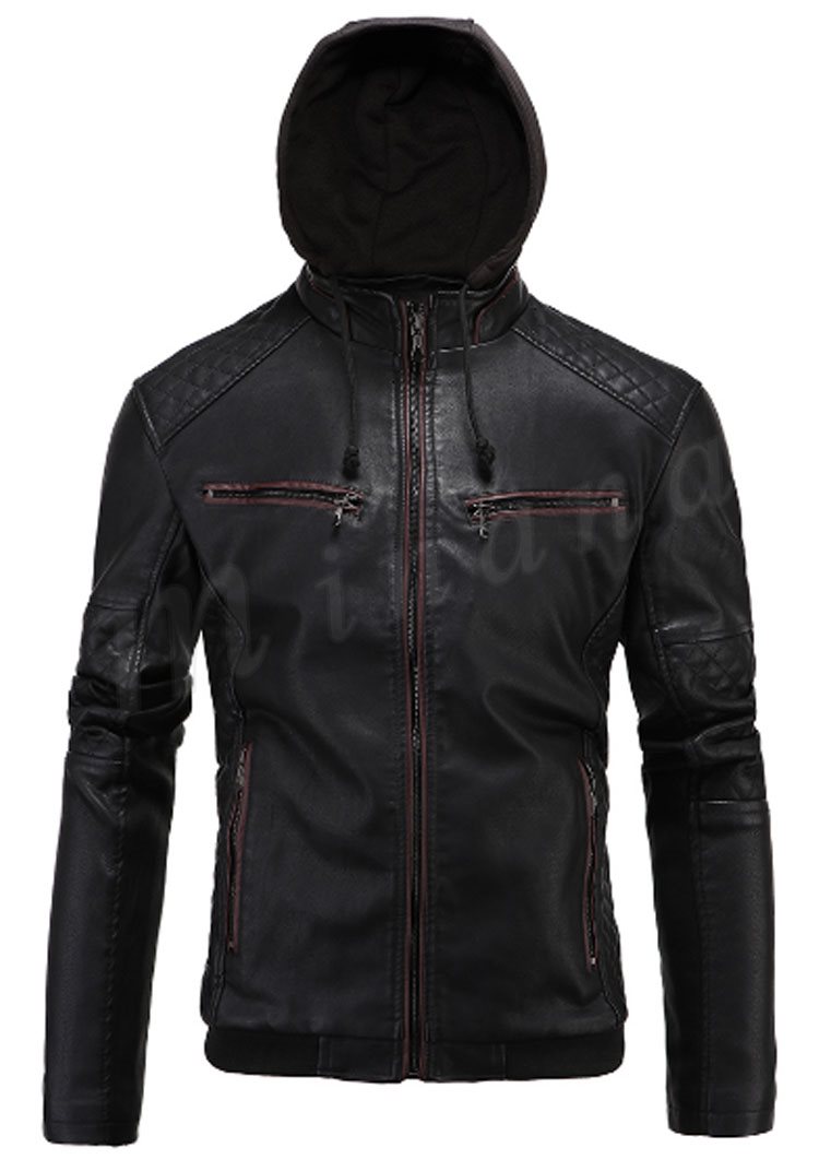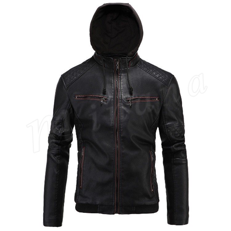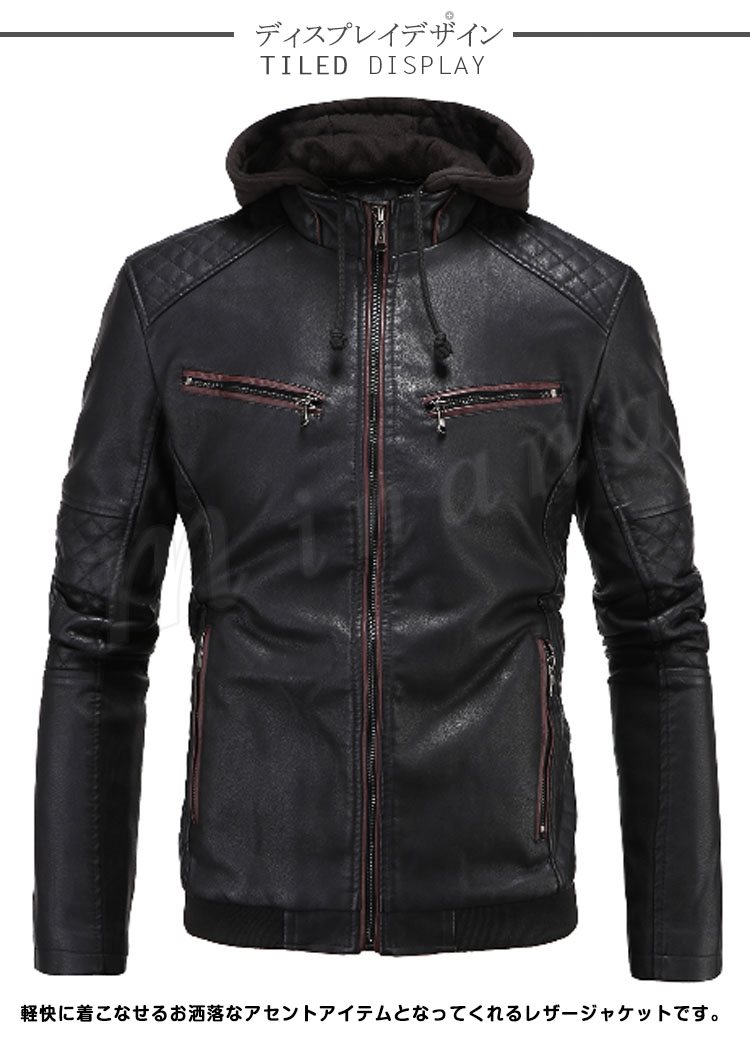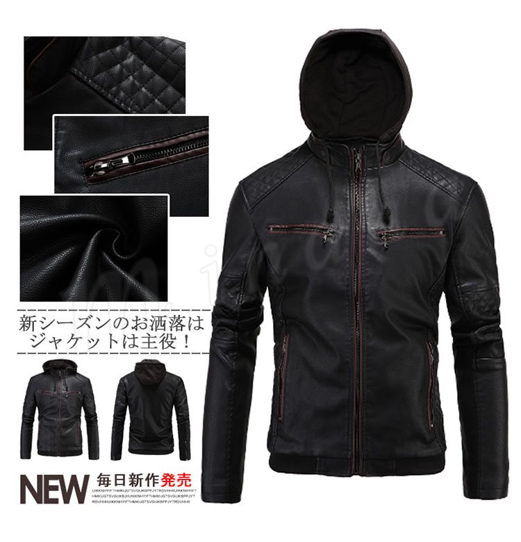 ライダースジャケット ライダース フード付き レザージャケット メンズ PU 細身 ジャケット アウター ジャンパー バイク ショット 春 秋