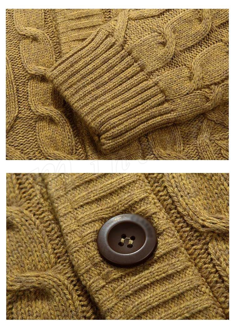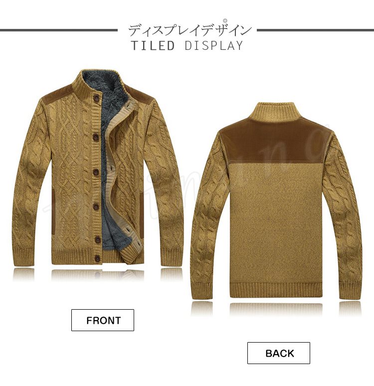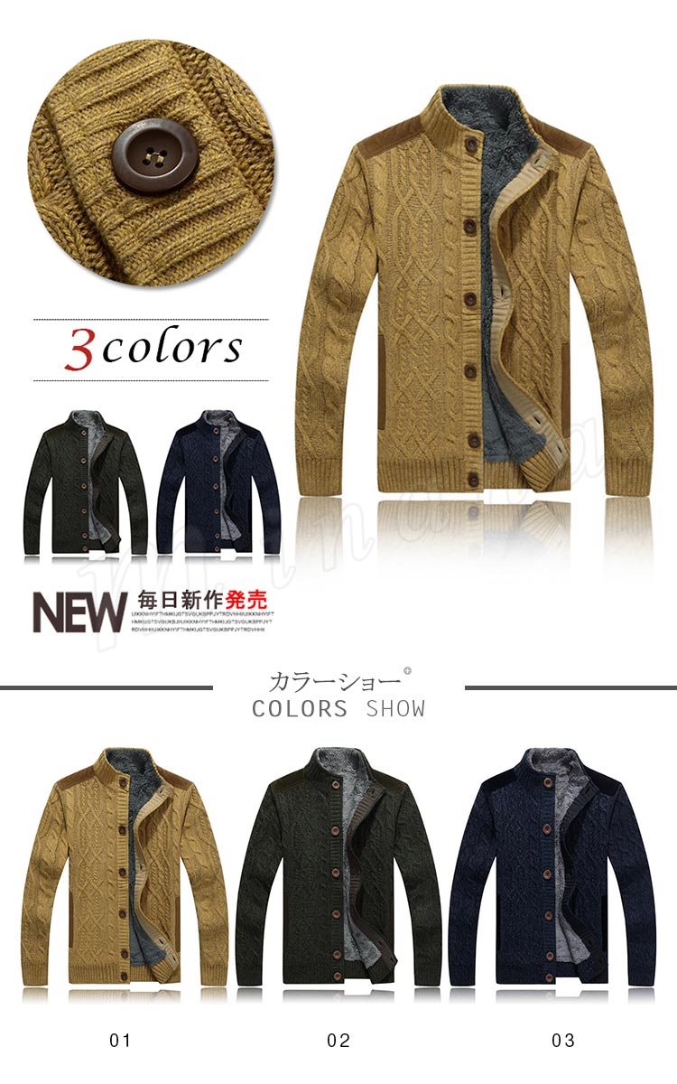カーディガン メンズ ニットセーター ケーブル編み 裏起毛 無地 厚手 あったか 防寒着 保温 スリム ビジネス 大きいサイズ