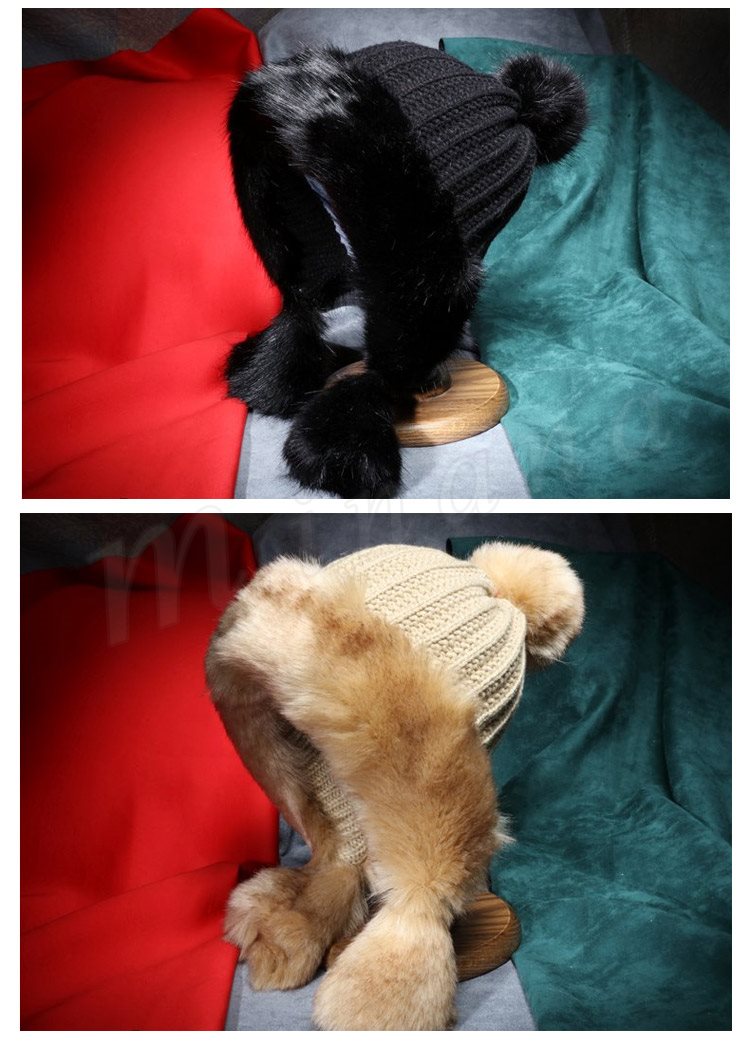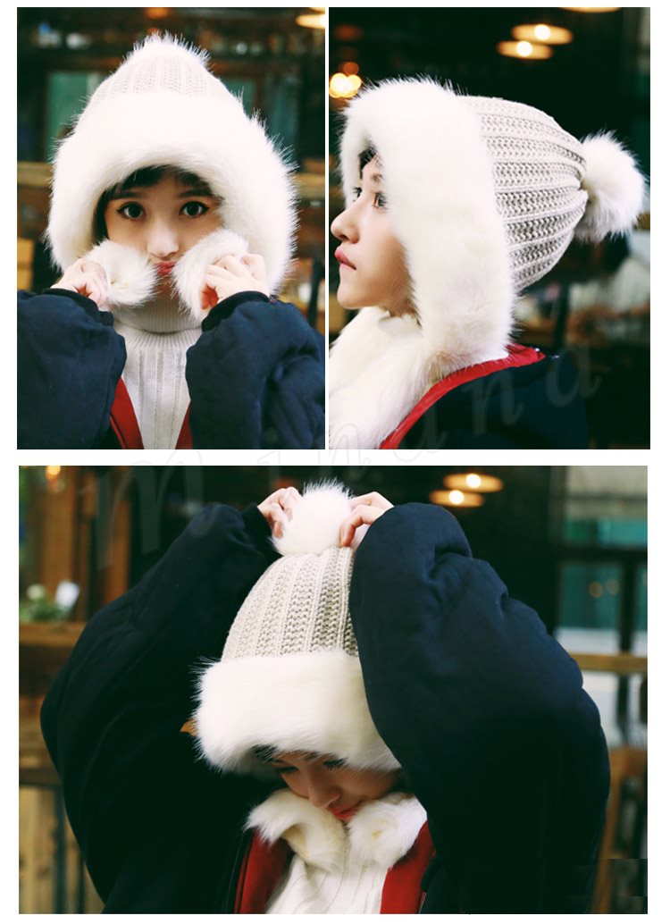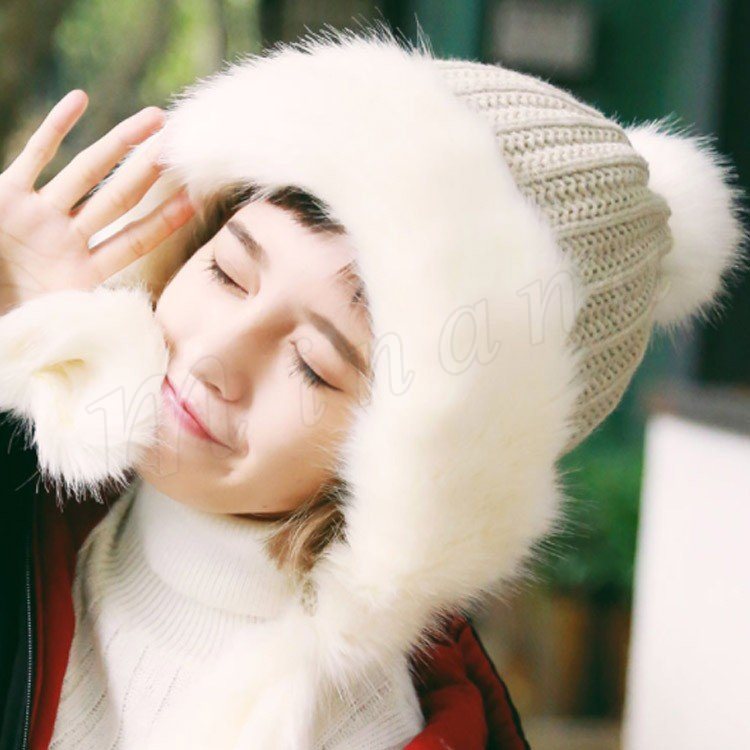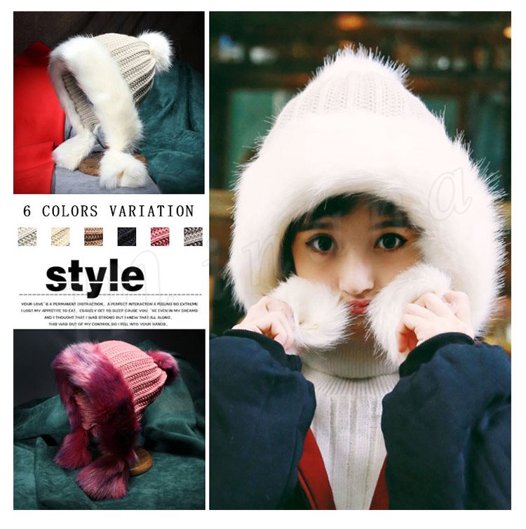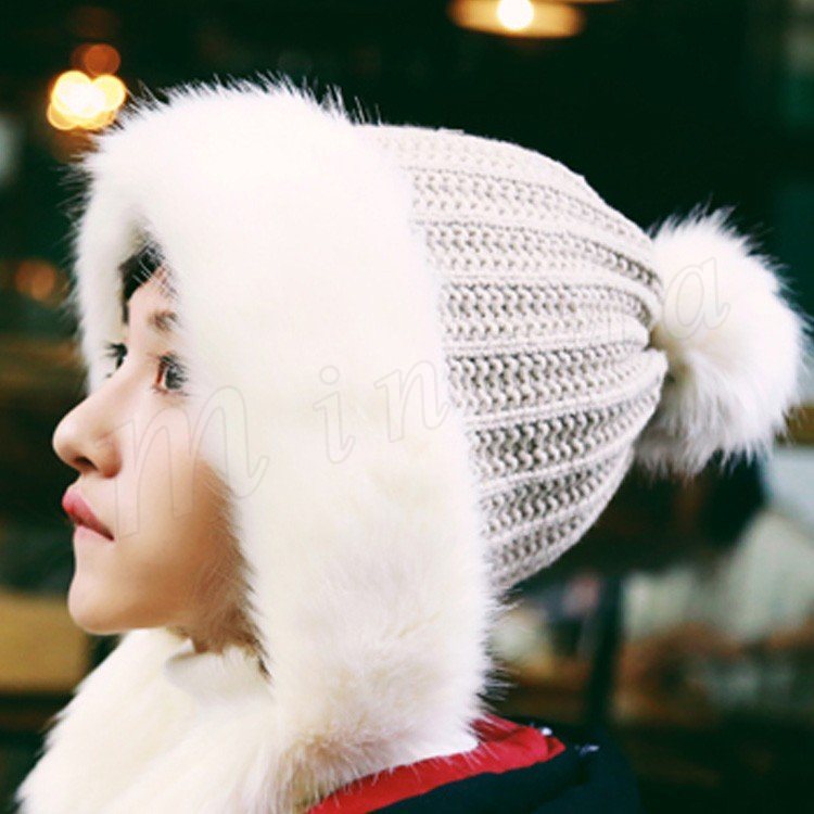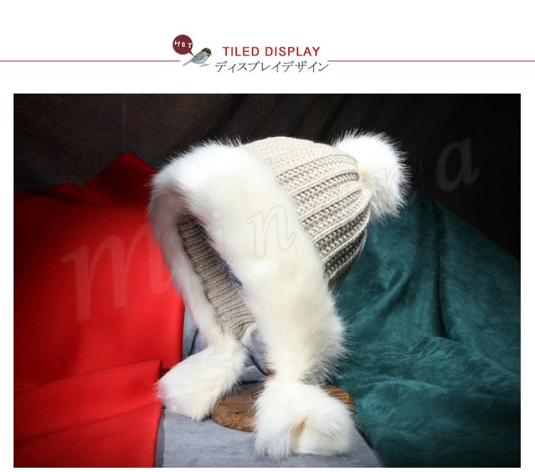 2018秋冬新作/ニットキャップ/レディース/厚手/フェイクファー付き/ポンポン付き/耳あて/ファッション/アウトドア/防寒/あたっか/可愛い/お