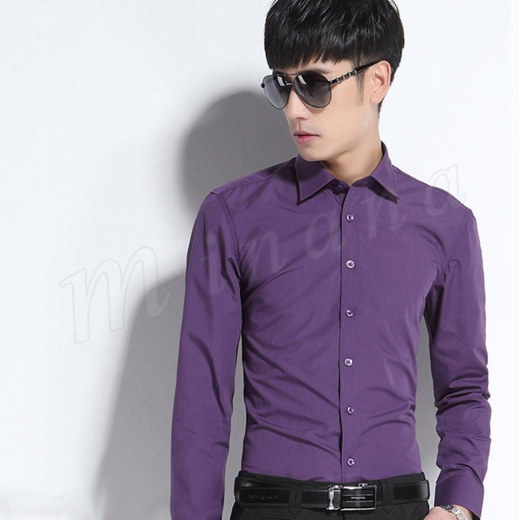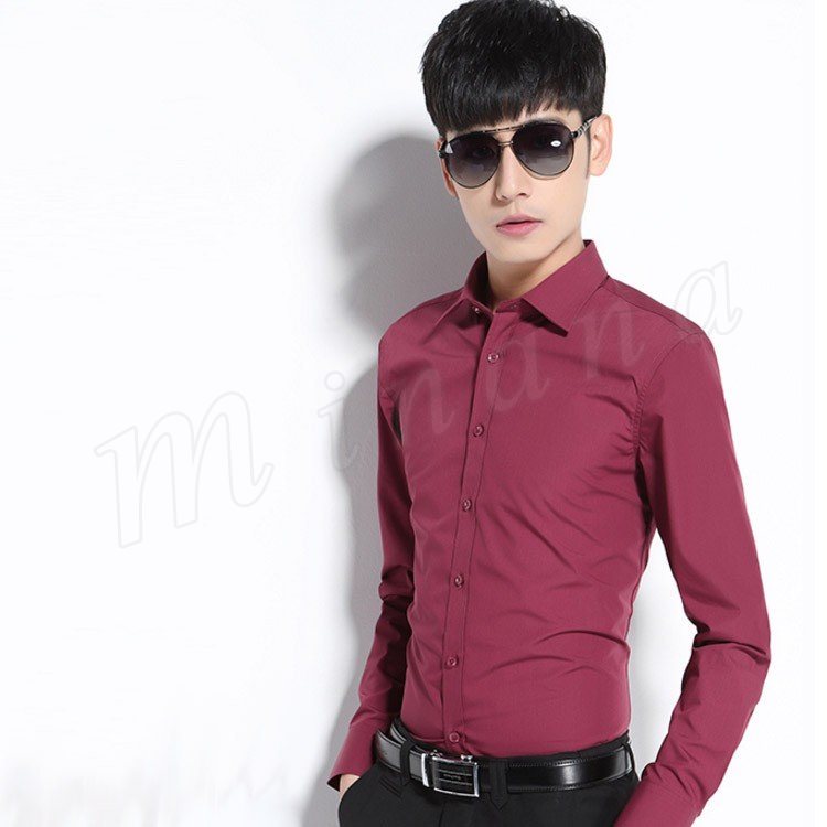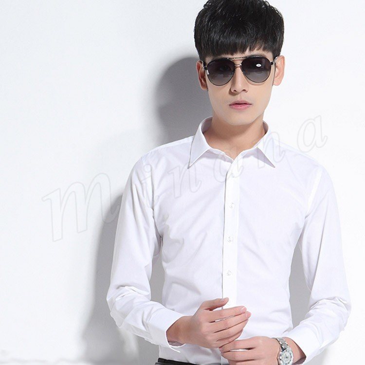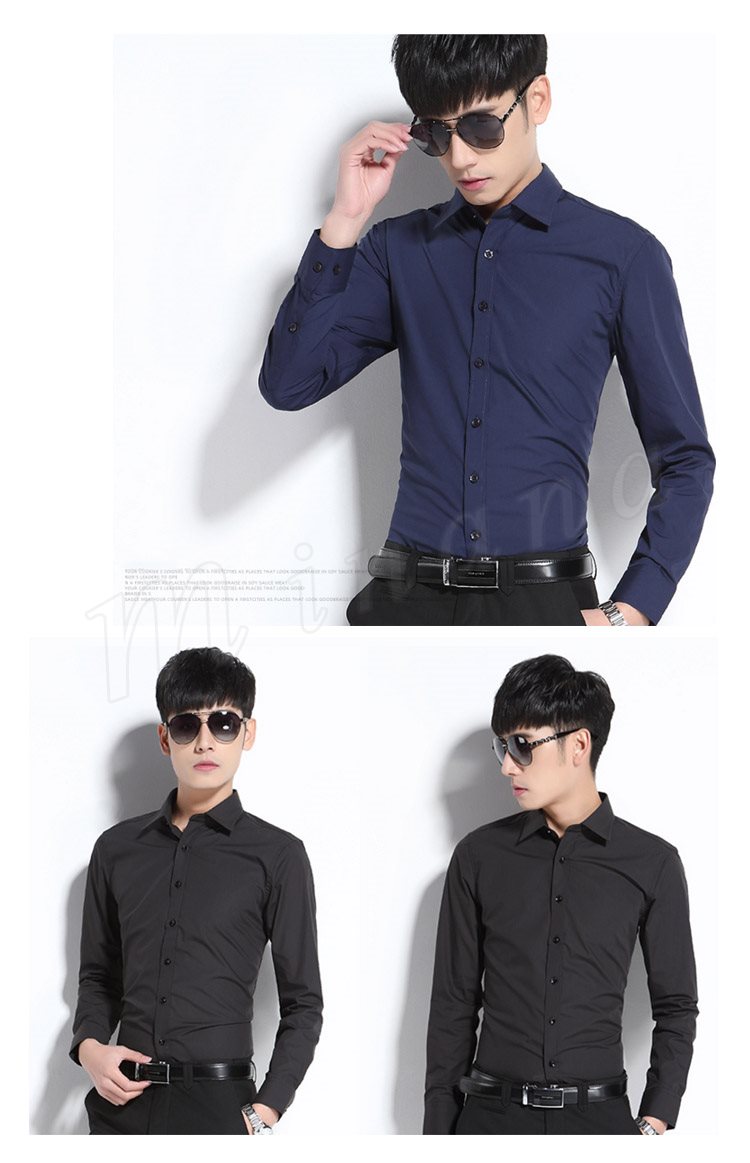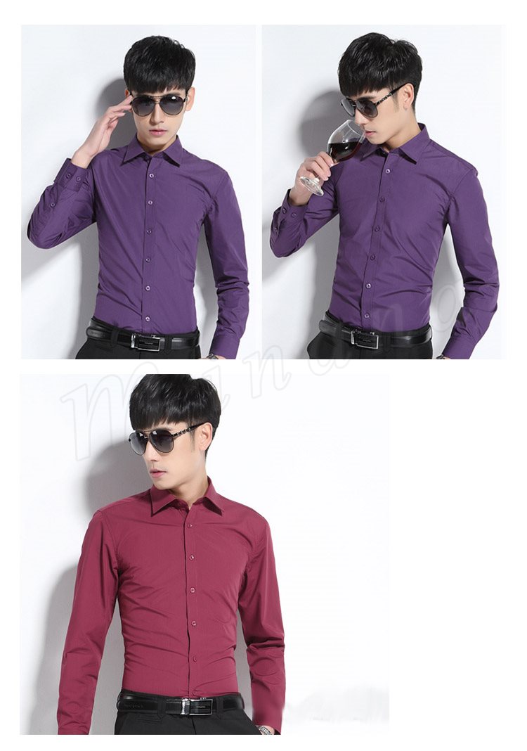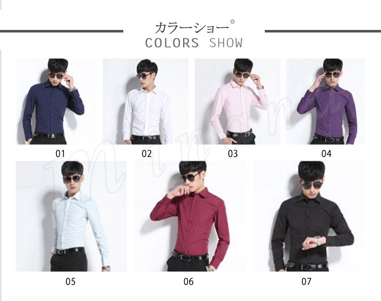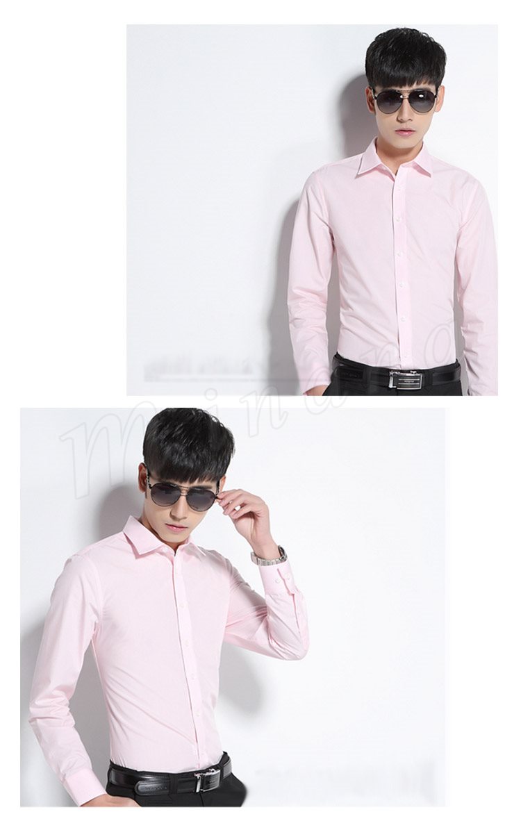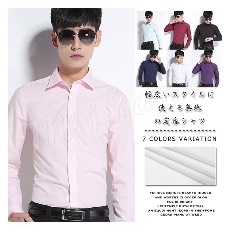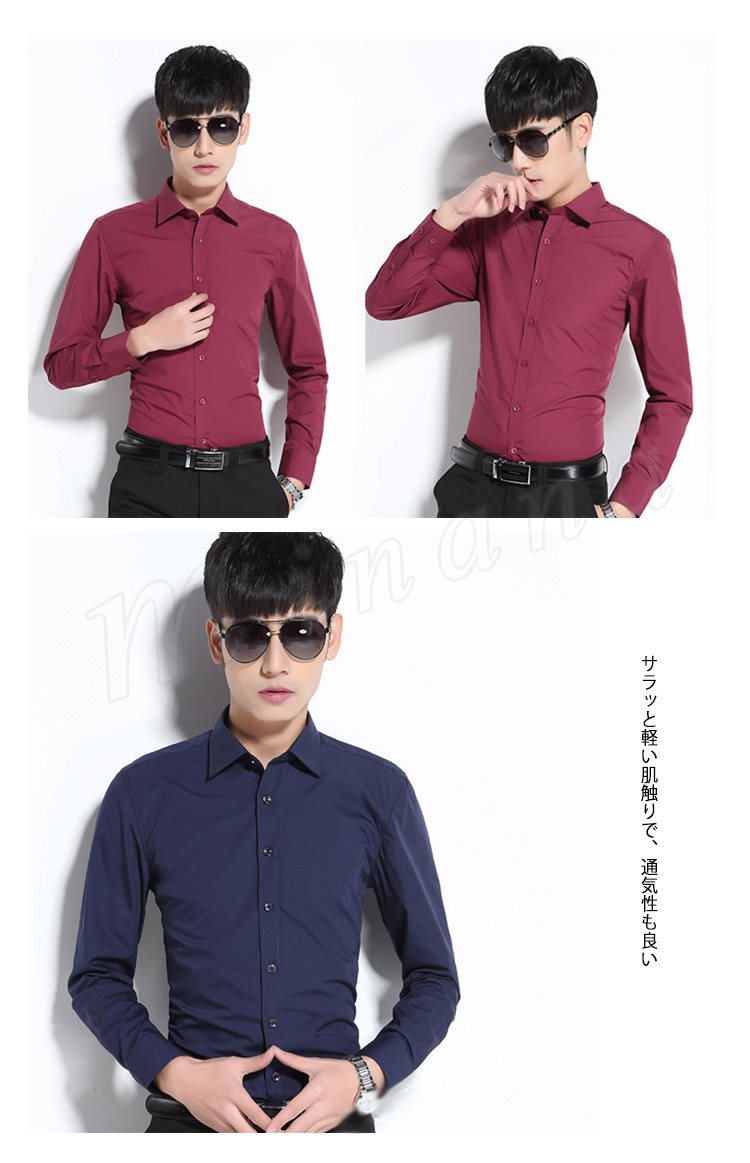 純色メンズシャツカジュアルシャツ長袖シャツビジネスシャツスリムシャツ無地シャツボタンシャツトップスメンズファッションシンプル