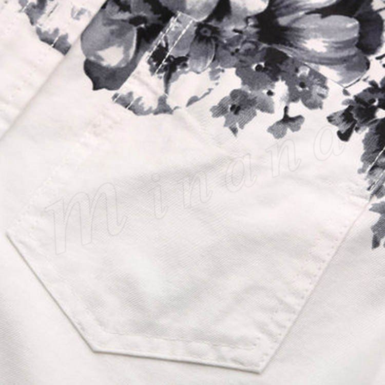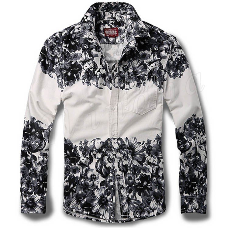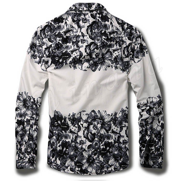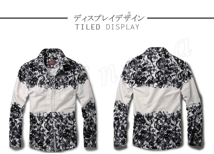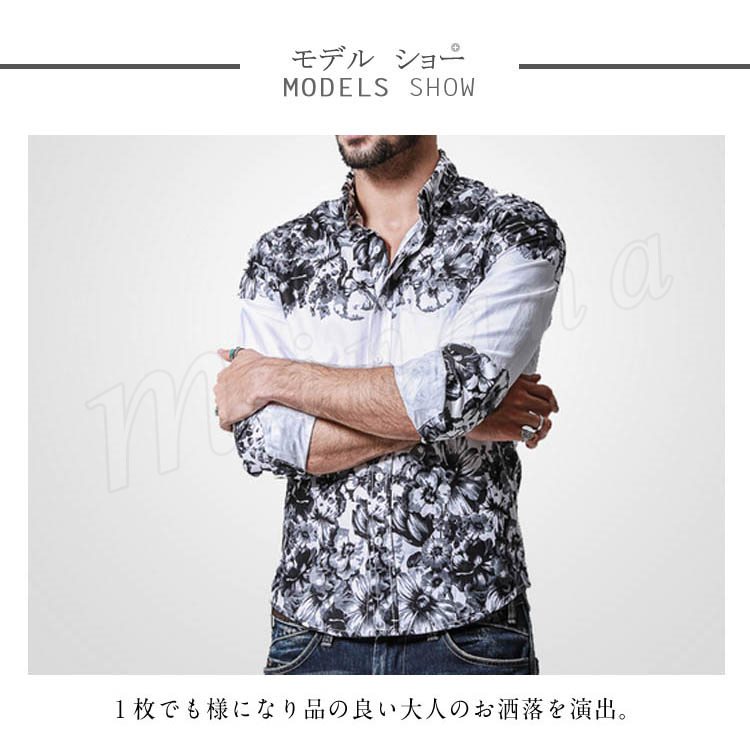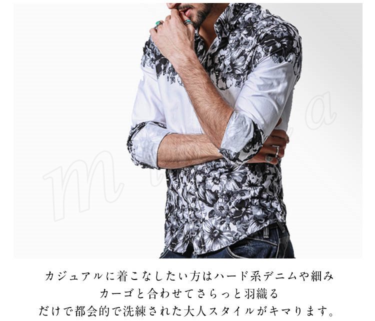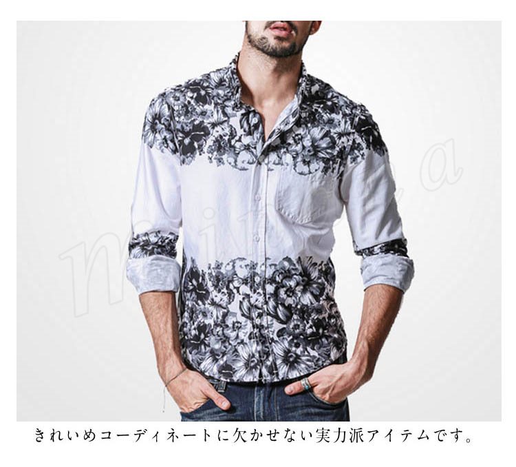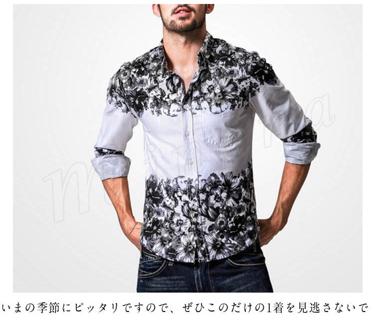 シャンカジュアルシャツアメカジおしゃれカジュアル花柄プリントメンズデニムシャツ春シャツ長袖デニムシャツ