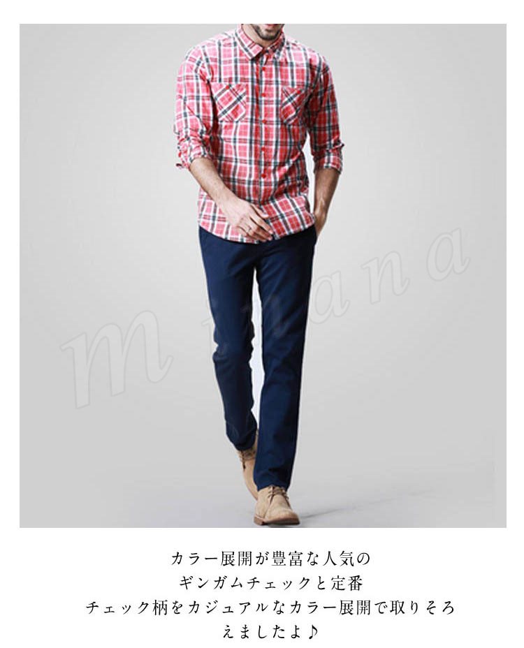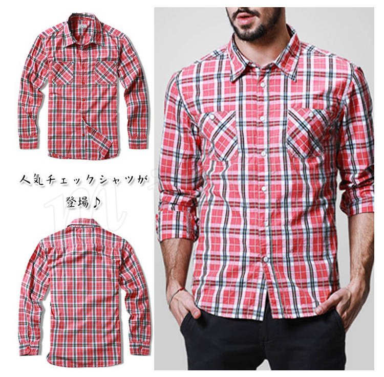 メンズシャツチェック長袖カジュアルシャツ長袖チェックレギュラーギンガムシャツ